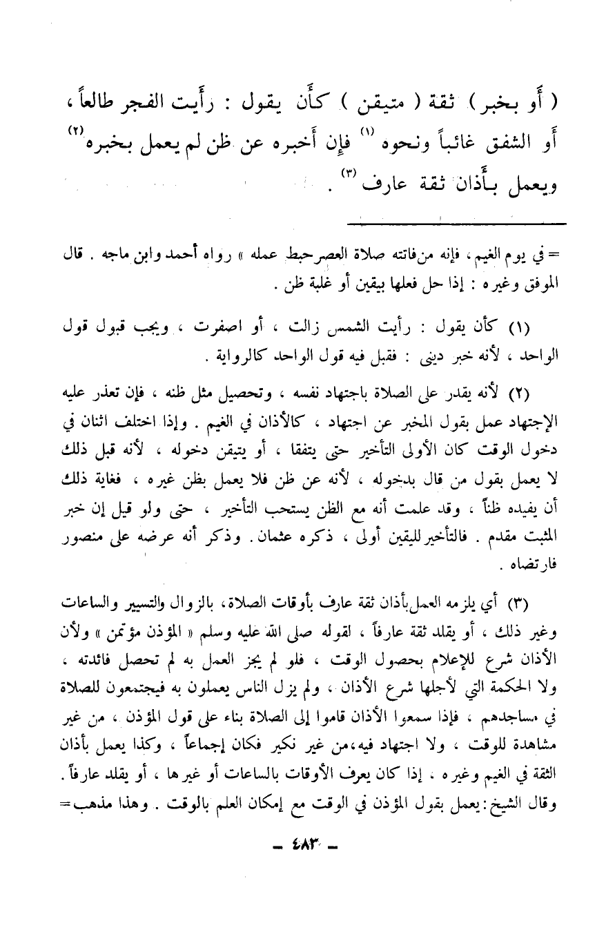 (¬2) التي يعرف بها الوقت، كالزوال ونحوه، لعمى أو مانع ما، ولا مخبر عن يقين.
