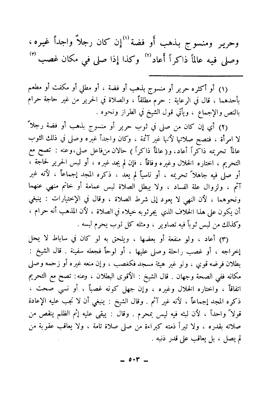 (¬2) أو ثمنه المعين حرام، أو بعضه، ومثله مسروق ونحوه، رجلا كان أو امرأة، لقول ابن عمر: من اشترى ثوبا وفيه درهم حرام لم يقبل الله صلاته ما دام عليه، ثم أدخل أصبعيه في أذنيه، وقال: صمتا إن لم أكن سمعته من رسول الله صلى الله عليه وسلم رواه أحمد، وفي إسناده هاشم، وبقية ولأن لبثه فيه محرم.