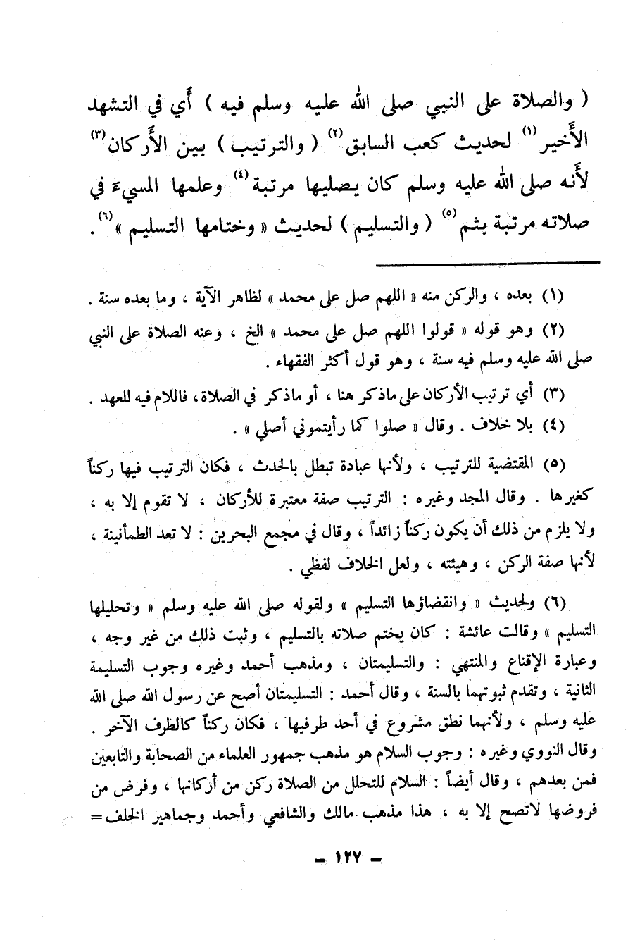 (والصلاة على النبي صلى الله عليه وسلم فيه) أي في التشهد الأخير (¬1) لحديث كعب السابق (¬2) (والترتيب) بين الأركان (¬3) لأنه صلى الله عليه وسلم كان يصليها مرتبة (¬4) وعلمها المسيء في صلاته مرتبة بثم (¬5) (والتسليم) لحديث وختامها التسليم (¬6) .