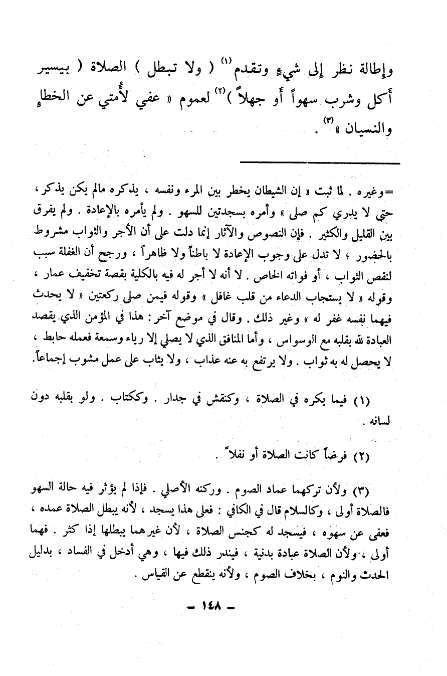 (¬1) فيما يكره في الصلاة وكنقش في جدار، وككتاب ولو بقلبه دون لسانه.