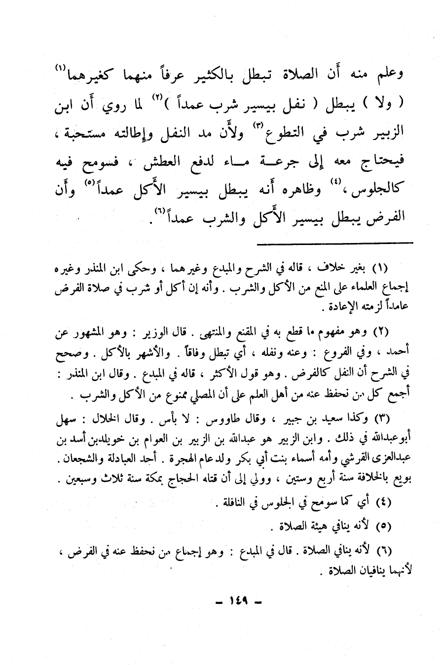 وعلم منه أن الصلاة تبطل بالكثير عرفًا منهما كغيرهما (¬1) (ولا) يبطل (نفل بيسير شرب عمدًا) (¬2) لما روي أن ابن الزبير شرب في التطوع (¬3) ولأن مد النفل وإطالته مستحبة، فيحتاج معه إلى جرعة ماء لدفع العطش، فسومح فيه كالجلوس (¬4) وظاهره أنه يبطل بيسير الأكل عمدًا (¬5) وأن الفرض يبطل بيسير الأكل والشرب عمدًا (¬6) .
