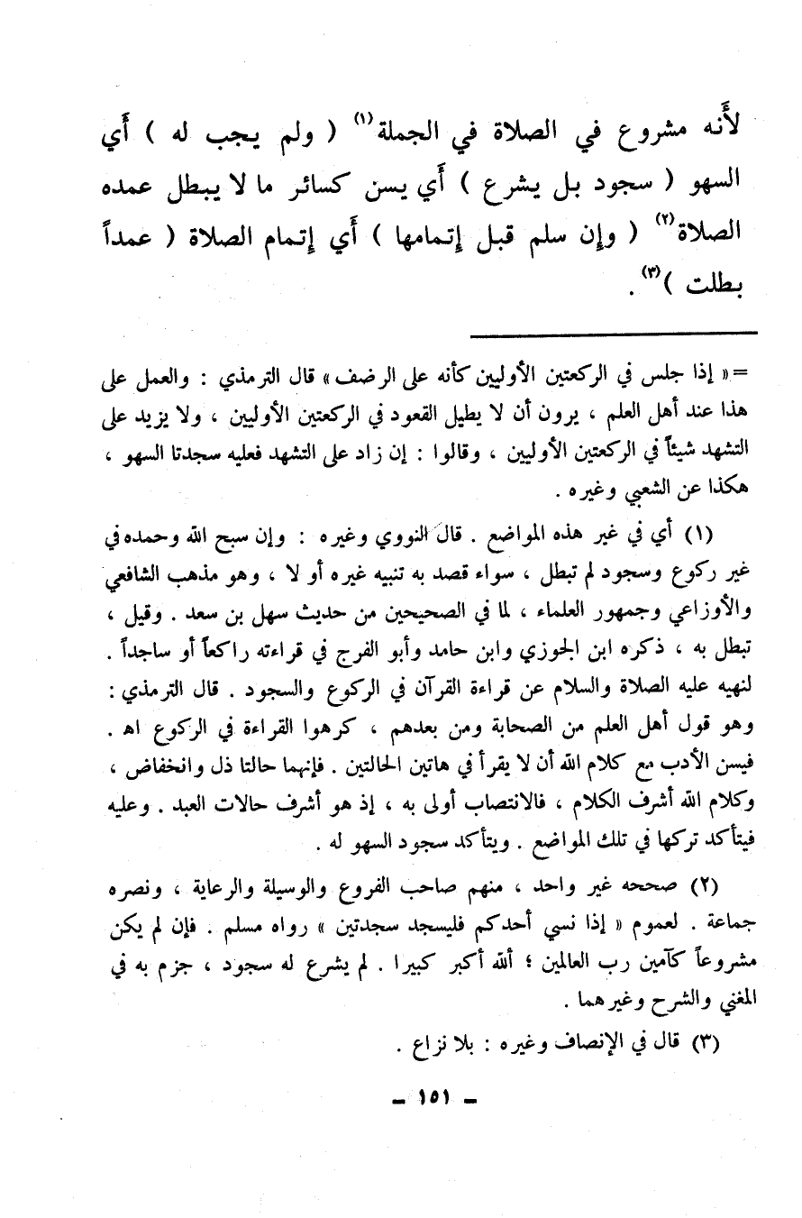 (¬2) صححه غير واحد، منهم صاحب الفروع والوسيلة والرعاية، ونصره جماعة، لعموم «إذا نسي أحدكم فليسجد سجدتين» رواه مسلم، فإن لم يكن مشروعًا كآمين رب العالمين؛ الله أكبر كبيرا، لم يشرع له سجود، جزم به في المغني والشرح وغيرهما.