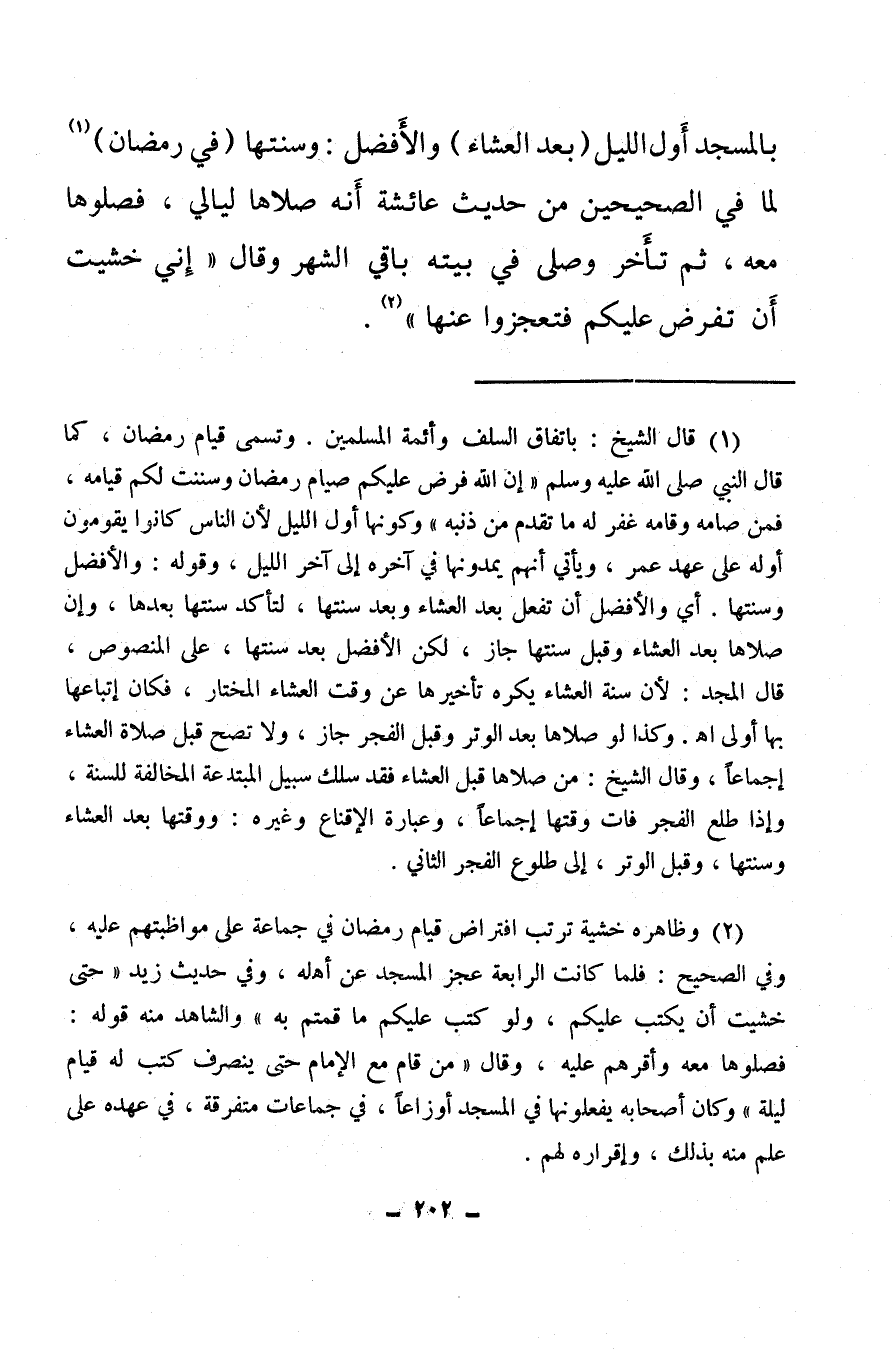 (¬2) وظاهره خشية ترتب افتراض قيام رمضان في جماعة على مواظبتهم عليه، وفي الصحيح: «فلما كانت الرابعة عجز المسجد عن أهله» ، وفي حديث زيد «حتى خشيت أن يكتب عليكم، ولو كتب عليكم ما قمتم به» ، والشاهد منه قوله: «فصلوها معه وأقرهم عليه» ، وقام: «من قام مع الإمام حتى ينصرف كتب له قيام ليلة» ، وكان أصحابه يفعلونها في المسجد أوزاعًا، في جماعات متفرقة، في عهده على علم منه بذلك وإقراره لهم.