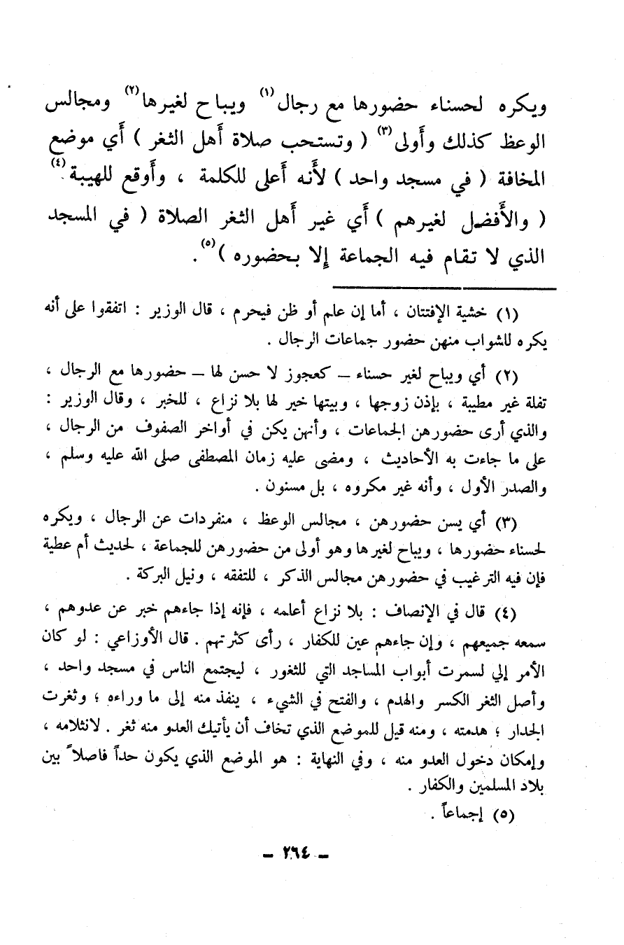 ويكره لحسناء حضورها مع رجال (¬1) ويباح لغيرها (¬2) ومجالس الوعظ كذلك وأولى (¬3) (وتستحب صلاة أهل الثغر) أي موضع المخافة (في مسجد واحد) لأنه أعلى للكلمة، وأوقع للهيبة (¬4) (والأفضل لغيرهم) أي غير أهل الثغر الصلاة (في المسجد الذي لا تقام فيه الجماعة إلا بحضوره) (¬5) .