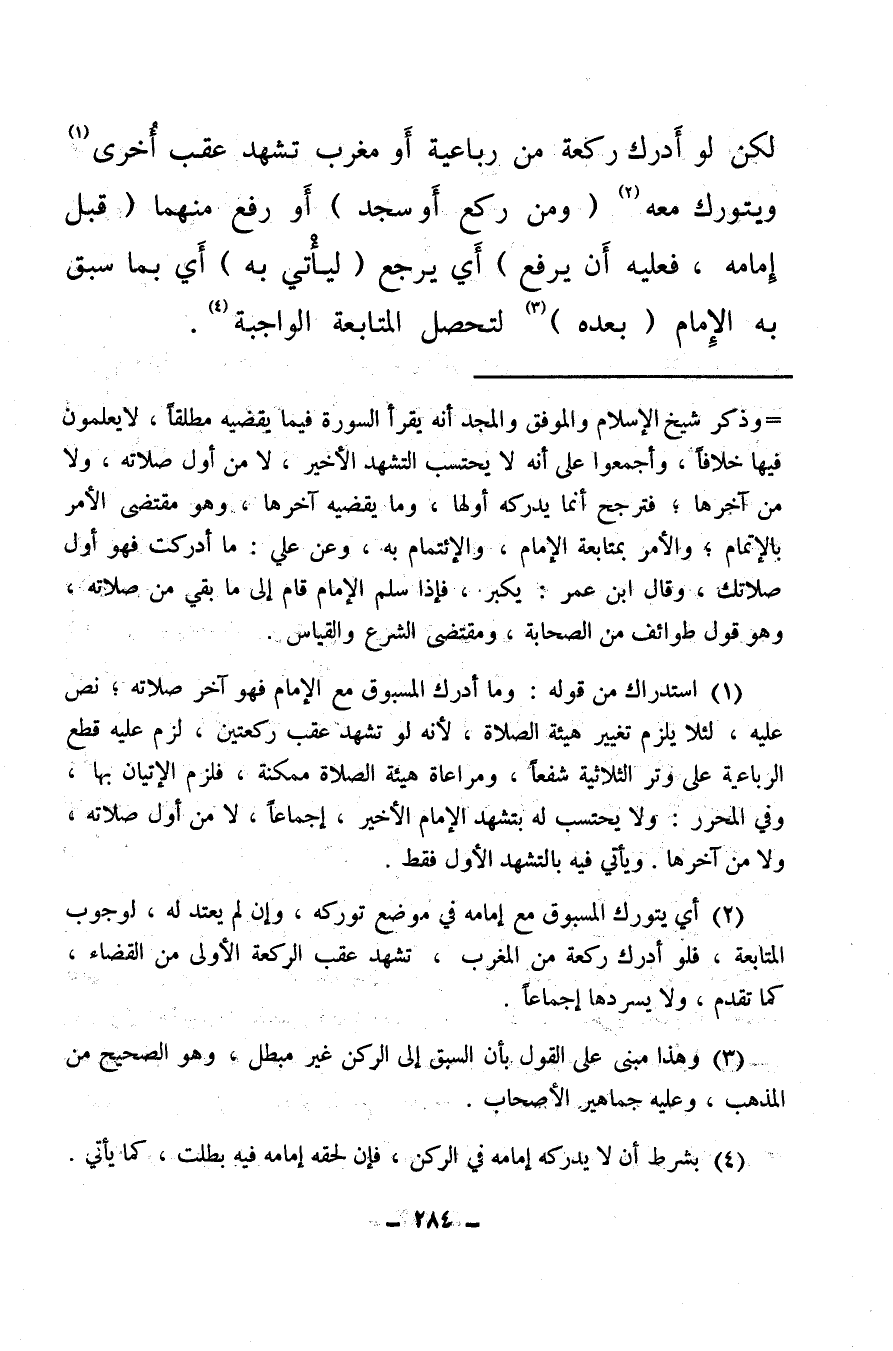 لكن لو أدرك ركعة من رباعية أو مغرب تشهد عقب أخرى (¬1) ويتورك معه (¬2) (ومن ركع أو سجد) أو رفع منهما (قبل إمامه، فعليه أن يرفع) أي يرجع (ليأتي به) أي بما سبق به الإمام (بعده) (¬3) لتحصل المتابعة الواجبة (¬4) .
