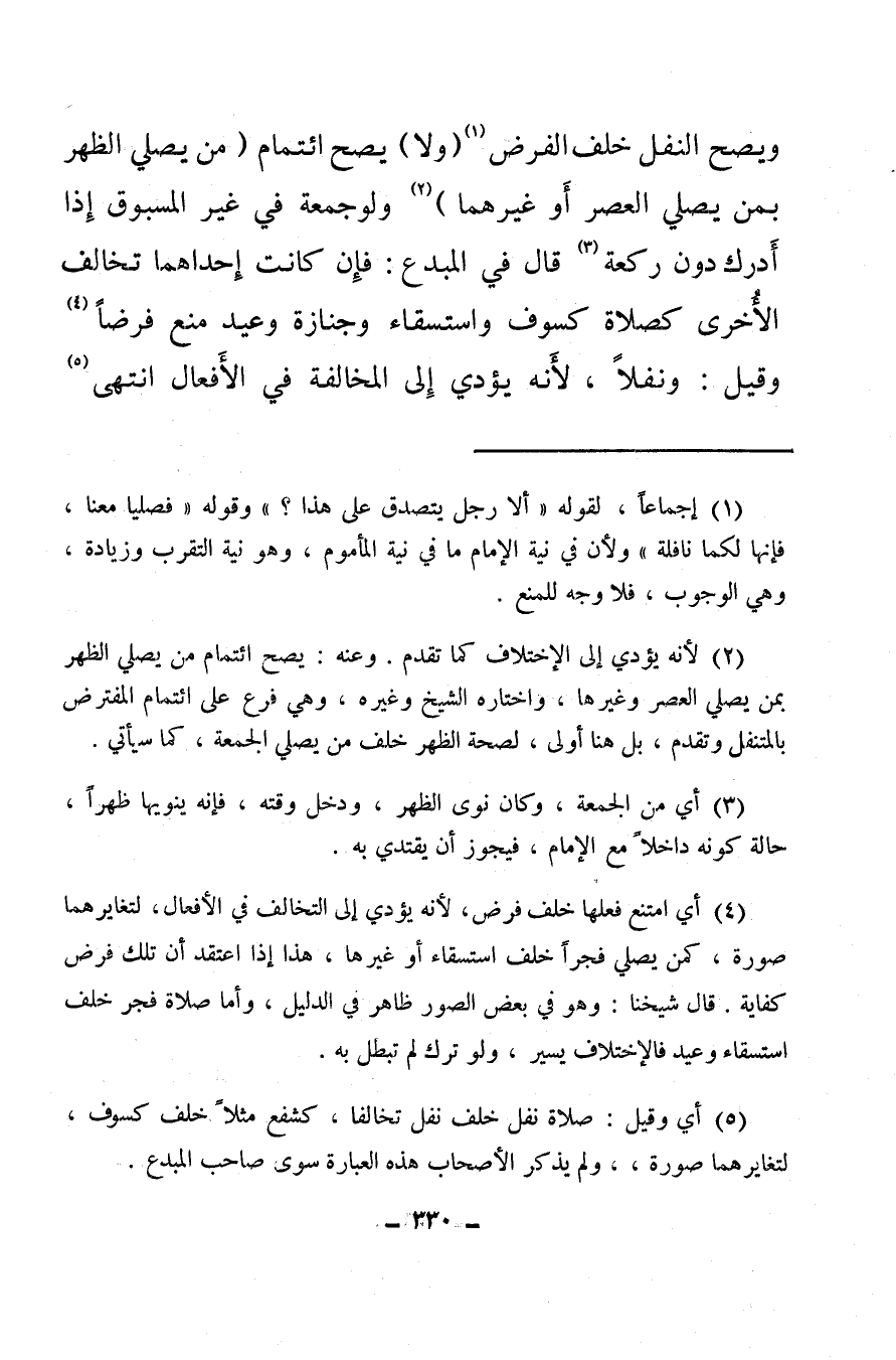 (¬5) أي وقيل: صلاة نفل خلف نفل تخالفًا، كشفع مثلا خلف كسوف لتغايرهما صورة، ولم يذكر الأصحاب هذه العبارة سوى صاحب المبدع.