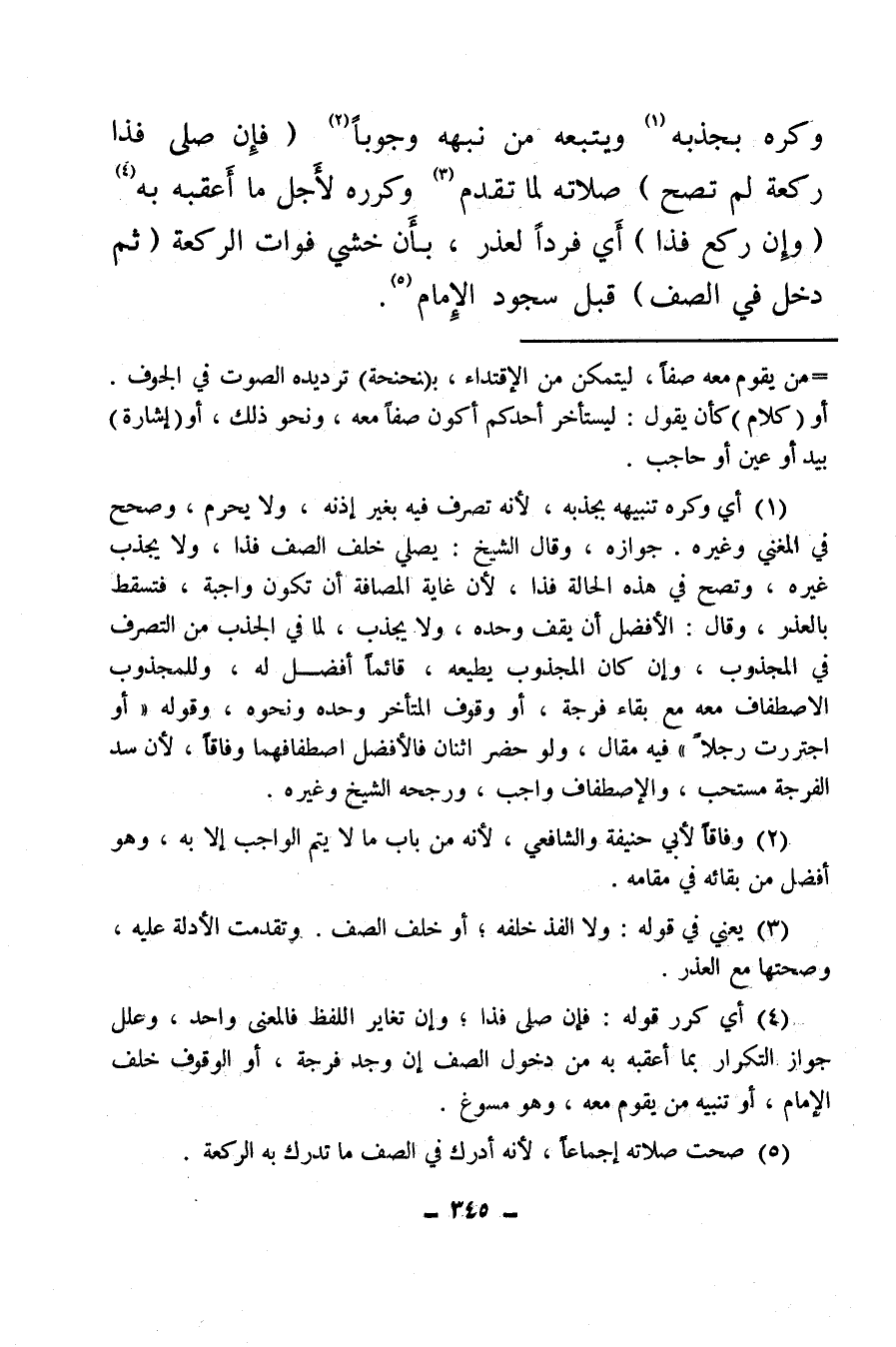 وكره بجذبه (¬1) ويتبعه من نبهه وجوبًا (¬2) (فإن صلى فذًا ركعة لم تصح) صلاته لما تقدم (¬3) وكرره لأجل ما أعقبه به (¬4) (وإن ركع فذًا) أي فردًا لعذر، بأن خشي فوات الركعة (ثم دخل في الصف) قبل سجود الإمام (¬5) .
