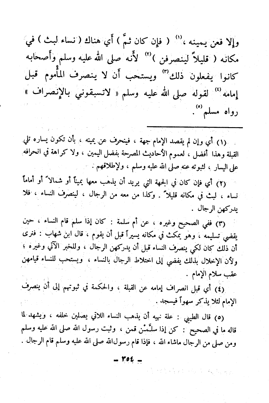 (¬5) قال الطيبي علة نهيه أن يذهب النساء اللاتي يصلين خلفه، ويشهد لما قاله ما في الصحيح، كن إذا سلمن قمن، وثبت رسول الله صلى الله عليه وسلم ومن صلى من الرجال ما شاء، الله فإذا قام رسول الله صلى الله عليه وسلم قام الرجال.