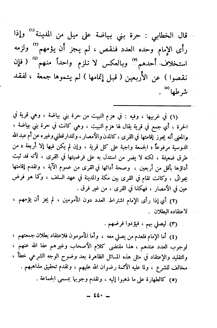 (¬4) أما الإمام فلعدم من يصلي معه، وأما المأمومون فلاعتقاد بطلان جمعتهم لوجوب العدد عندهم، هذا مقتضى كلام الأصحاب وغيرهم عفا الله عنهم، والتقليد والاعتقاد في مثل هذه المسائل الظاهرة بعد وضوح الوجه الشرعي خطأ مخالف للشرع، ولما عليه الأئمة رضوان الله عليهم، وتقدم تحقيق مذاهبهم.