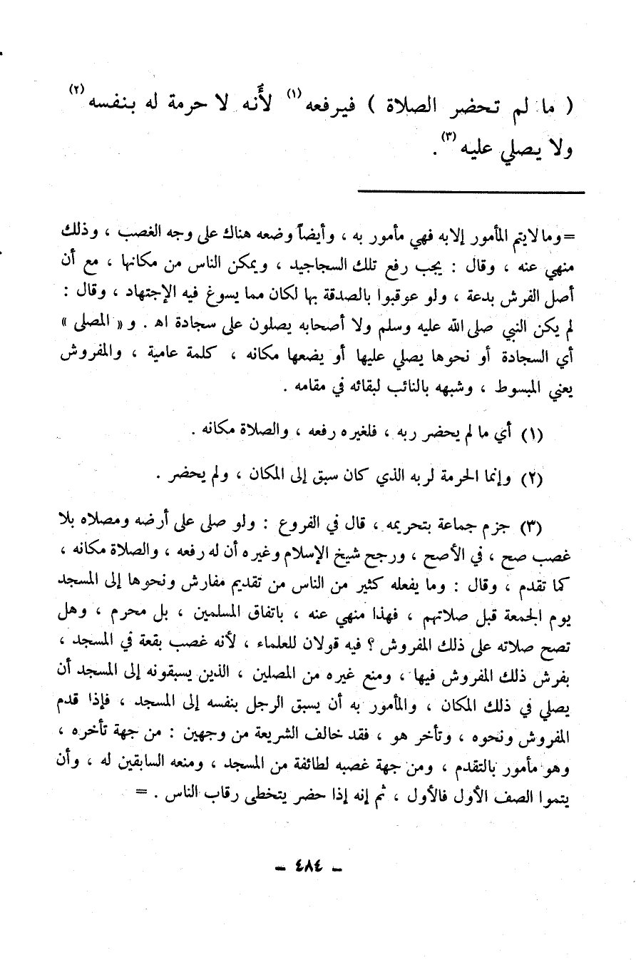 (¬2) وإنما الحرمة لربه الذي كان سبق إلى المكان، ولم يحضر.