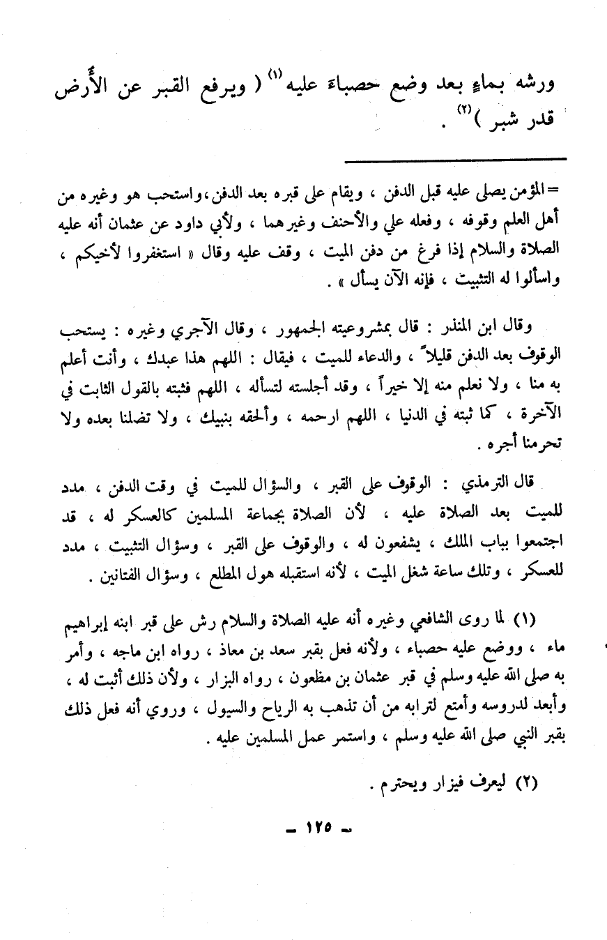 ورشه بماءٍ بعد وضع حصباءَ عليه (¬1) (ويرفع القبر عن الأَرض قدر شبر) (¬2) .