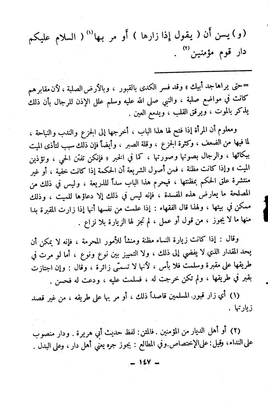 (¬1) أي زار قبور المسلمين قاصدًا ذلك، أو مر بها على طريقه، من غير قصد زيارتها.