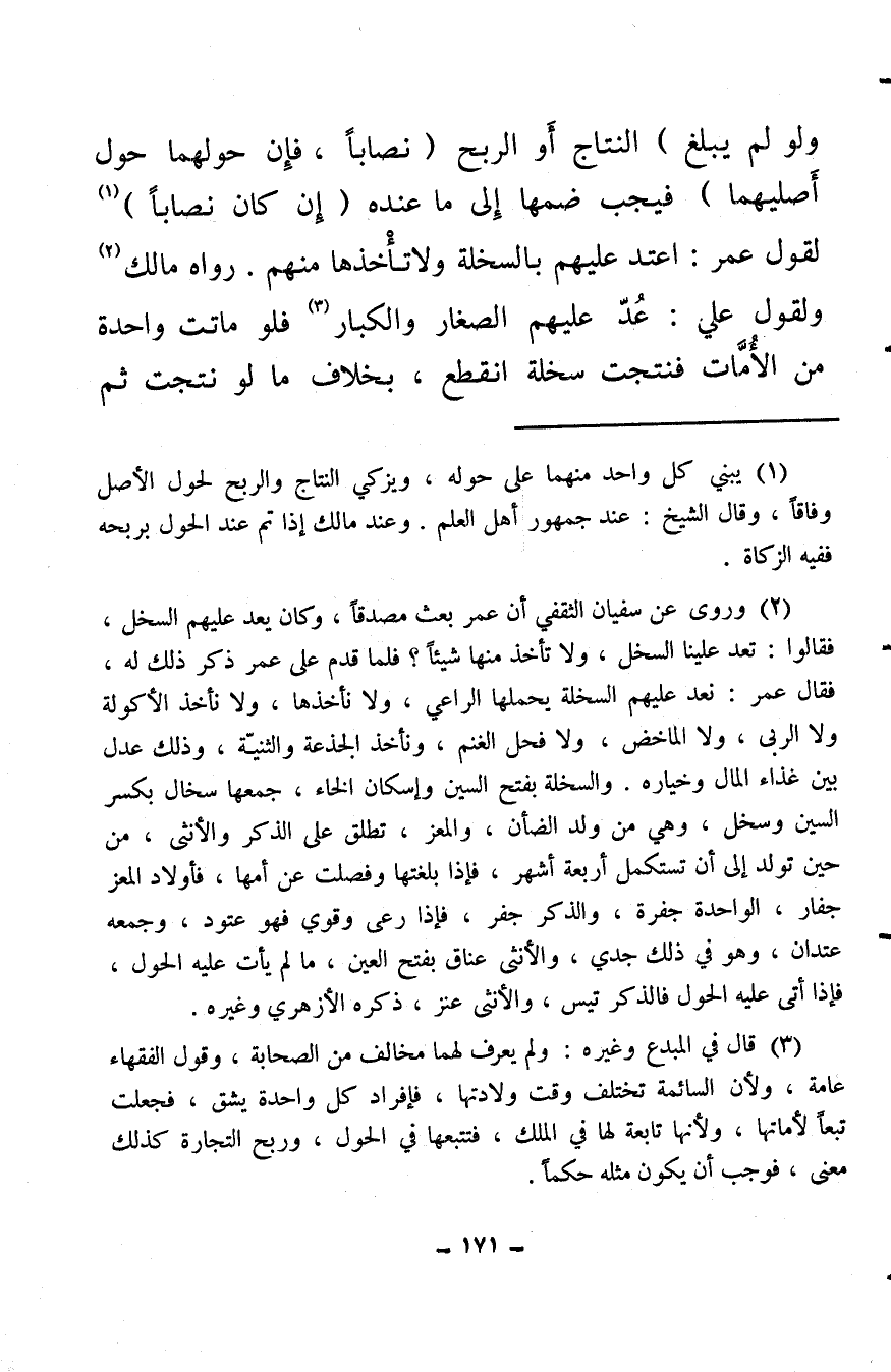 (¬3) قال في المبدع وغيره: ولم يعرف لهما مخالف من الصحابة، وقول الفقهاء عامة، ولأن السائمة تختلف وقت ولادتها، فإفراد كل واحدة يشق، فجعلت تبعًا لأماتها، ولأنها تابعة لها في الملك، فتتبعها في الحول، وربح التجارة كذلك معنى، فوجب أن يكون مثله حكمًا.