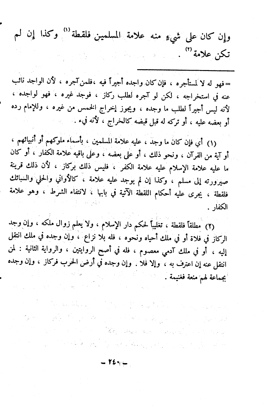 (¬1) أي فإن كان ما وجد، عليه علامة المسلمين بأسماء ملوكهم أو أنبيائهم، أو آية من القرآن، ونحو ذلك، أو على بعضه، ,على باقيه علامة الكفار، أو كان ما عليه علامة الإسلام عليه علامة الكفر، فليس ذلك بركاز، لأن ذلك قرينة صيرورته إلى مسلم، وكذا إن لم يوجد عليه علامة، كالأواني والحلي والسبائك فلقطة، يجرى عليه أحكام اللقطة الآتية في بابها، لانتفاء الشرط، وهو علامة الكفار.