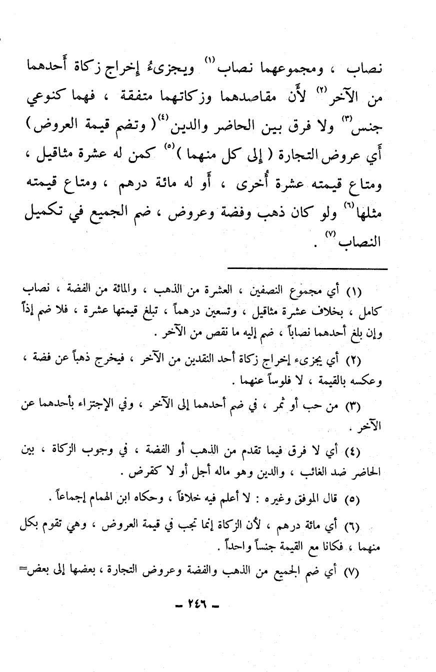 (¬7) أي ضم الجميع من الذهب والفضة وعروض التجارة، بعضها إلى بعض