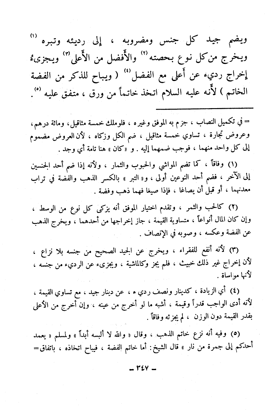 ويضم جيد كل جنس ومضروبه، إلى رديئه وتبره (¬1) ويخرج من كل نوع بحصته (¬2) والأفضل من الأَعلى (¬3) ويجزيءُ إخراج رديء عن أعلى مع الفضل (¬4) (ويباح للذكر من الفضة الخاتم) لأَنه عليه السلام اتخذ خاتمًا من ورق، متفق عليه (¬5) .