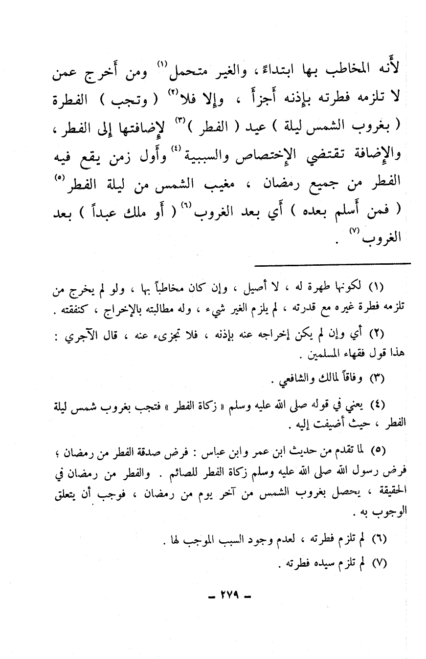 (¬5) لما تقدم من حديث ابن عمر وابن عباس: فرض صدقة الفطر من رمضان؛ فرض رسول الله صلى الله عليه وسلم زكاة الفطر للصائم. والفطر من رمضان في الحقيقة، يحصل بغروب الشمس من آخر يوم من رمضان، فوجب أن يتعلق الوجوب به.