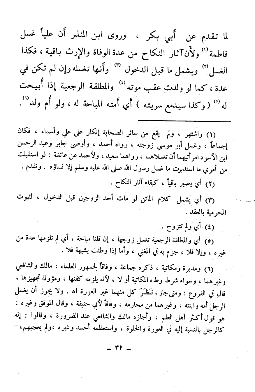 (¬6) ومدبرة ومكاتبة، ذكره جماعة، وفاقًا لجمهور العلماء، مالك والشافعي وغيرهما، وسواء شرط وطء المكاتبة أو لا، لأنه يلزمه كفنها، ومؤونة تجهيزها، قال في الفروع: ومتى جاز، نَظَرَ كل منهما غير العورة. اهـ. ولا يجوز أن يغسل الرجل أمه وابنته، وغيرهما من محارمه، وفاقًا لأبي حنيفة، وقال الموفق وغيره: هو قول أكثر أهل العلم، وأجازه مالك والشافعي عند الضرورة، وقالوا: إنه كالرجل بالنسبة إليه في العورة والخلوة، واستعظمه أحمد وغيره، ولم يعجبهم وذلك أنها محرمة حال الحياة، فكذا بعد الموت، والسرية قال الجوهري: هي الأمة التي بوأتها بيتًا، منسوبة إلى السر وهو الجماع أو الإخفاء، لأن الإنسان كثيرًا ما يسرها ويسترها عن امرأته، وضمت سينه لأن الأبنية قد تغير في النسبة خاصة، وسمي الجماع سرًا لأنه يكون في السر، وليس لآثم بقتل حق في غسل مقتول.