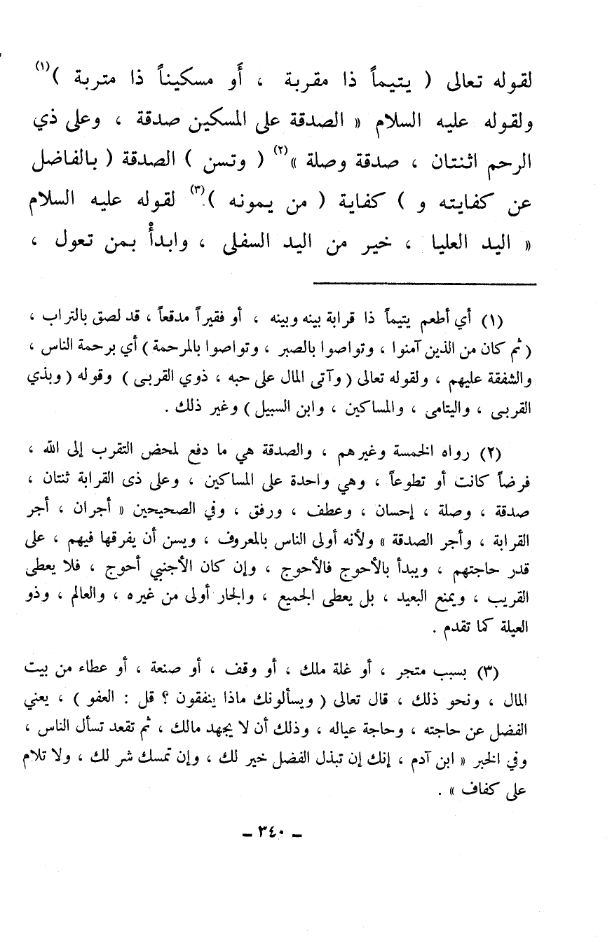(¬3) بسبب متجر، أو غلة ملك، أو وقف، أو صنعة، أو عطاء من بيت المال، ونحو ذلك، قال تعالى {وَيَسْأَلُونَكَ مَاذَا يُنْفِقُونَ قُلِ الْعَفْوَ} ، يعني الفضل عن حاجته، وحاجة عياله، وذلك أن لا يجهد مالك، ثم تقعد تسأل الناس، وفي الخبر «ابن آدم، إنك إن تبذل الفضل خير لك، وإن تمسك شر لك، ولا تلام على كفاف» .