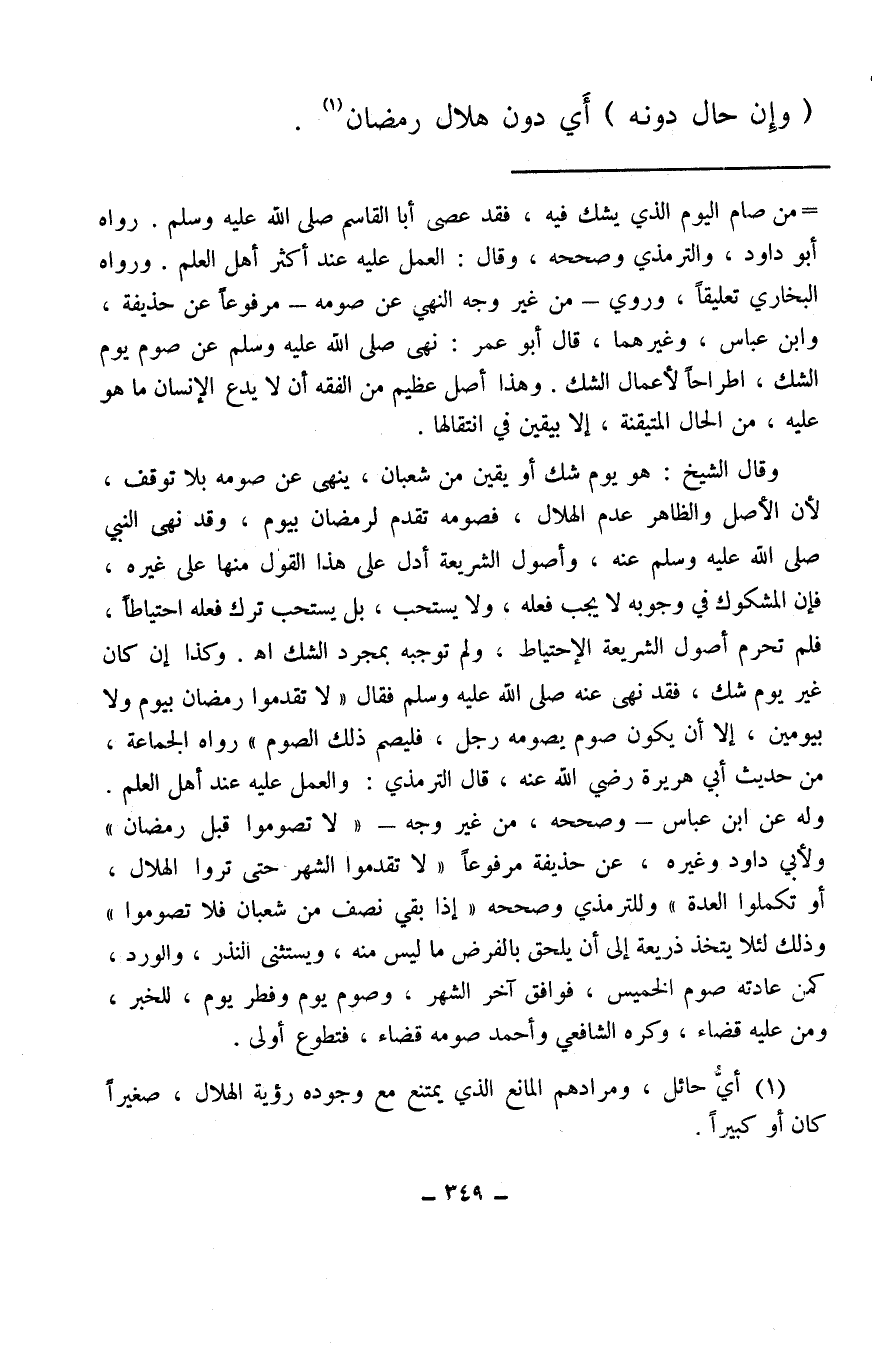 (¬1) أيُّ حائل، ومرادهم المانع الذي يمتنع مع وجوده رؤية الهلال، صغيرًا كان أو كبيرًا.