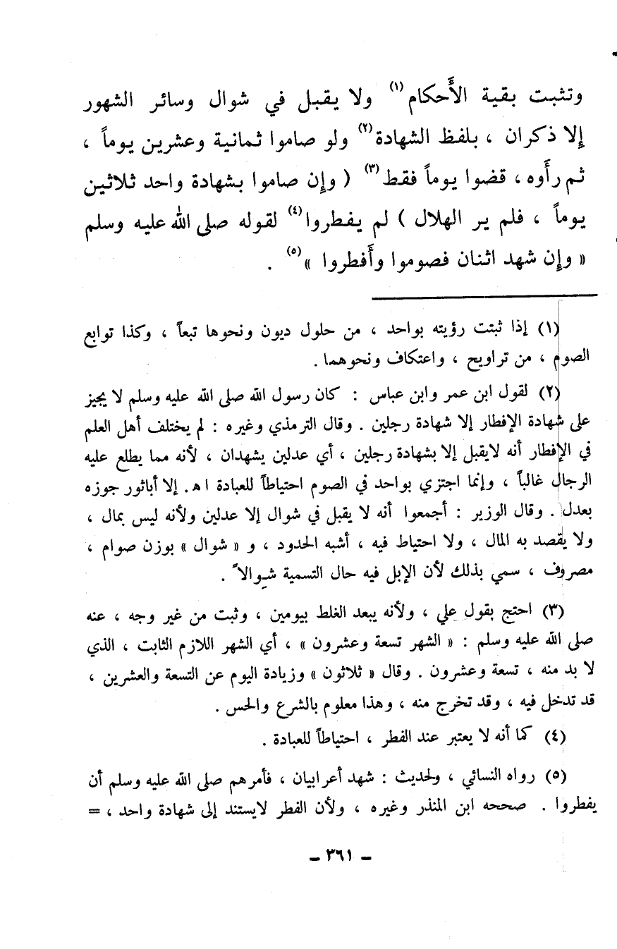 (¬5) رواه النسائي، ولحديث: شهد أعرابيان، فأمرهم صلى الله عليه وسلم أن يفطروا. صححه ابن المنذر وغيره، ولأن الفطر لا يستند إلى شهادة واحد،