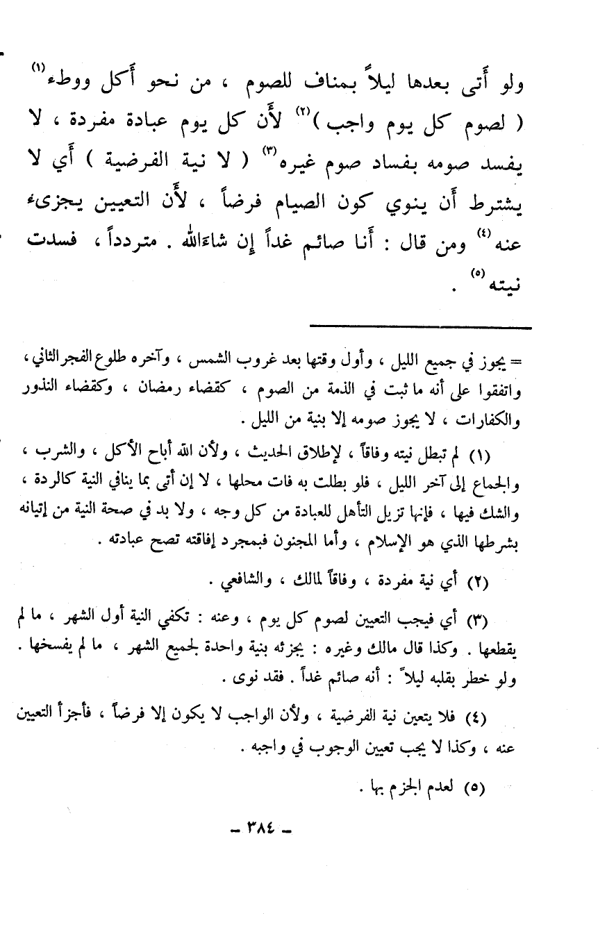 ولو أتى بعدها ليلاً بمناف للصوم، من نحو أكل ووطء (¬1) (لصوم كل يوم واجب) (¬2) لأن كل يوم عبادة مفردة، لا يفسد صومه بفساد صوم غيره (¬3) (لا نية الفرضية) أي لا يشترط أن ينوي كون الصيام فرضًا، لأن التعيين يجزئ عنه (¬4) ومن قال: أنا صائم غدًا إن شاء الله. مترددًا، فسدت نيته (¬5) .