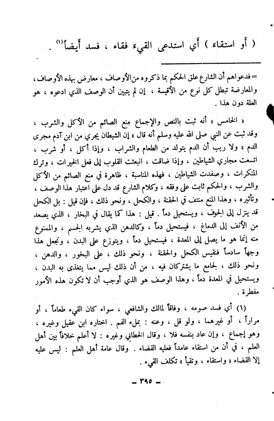 (¬1) أي فسد صومه، وفاقًا لمالك والشافعي، سواء كان القيء طعامًا، أو مرارًا، أو غيرهما، ولو قل، وعنه: بملء الفم. اختاره ابن عقيل وغيره، وهو إجماع، وإن عاد بنفسه فلا، وقال الخطابي وغيره: لا أعلم خلافًا بين أهل العلم، في أن من استقاء عامدًا فعليه القضاء. وقال عامة أهل العلم: ليس عليه إلا القضاء «واستقاء، وتقيأ» تكلف القيء.