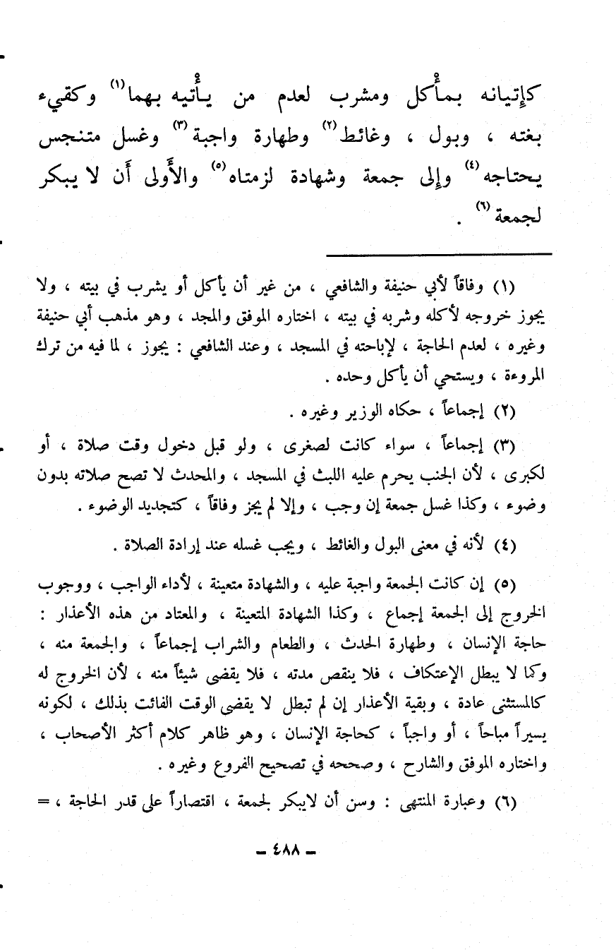 (¬6) وعبارة المنتهى: وسن أن لا يبكر لجمعة، اقتصارًا على قدر الحاجة،
