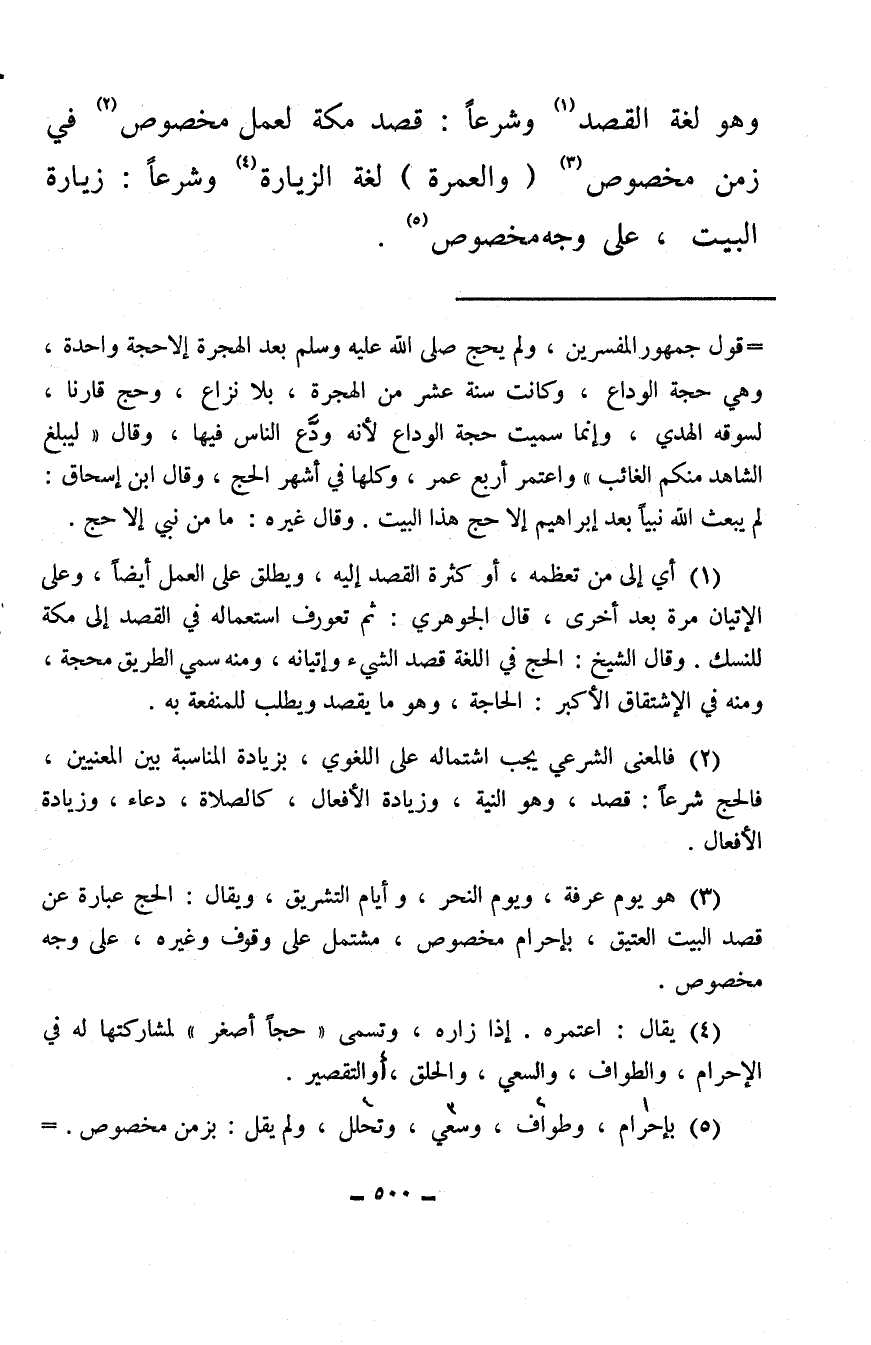 وهو لغة القصد (¬1) وشرعًا: قصد مكة لعمل مخصوص (¬2) في زمن مخصوص (¬3) (والعمرة) لغة الزيارة (¬4) وشرعًا: زيارة البيت، على وجه مخصوص (¬5) .