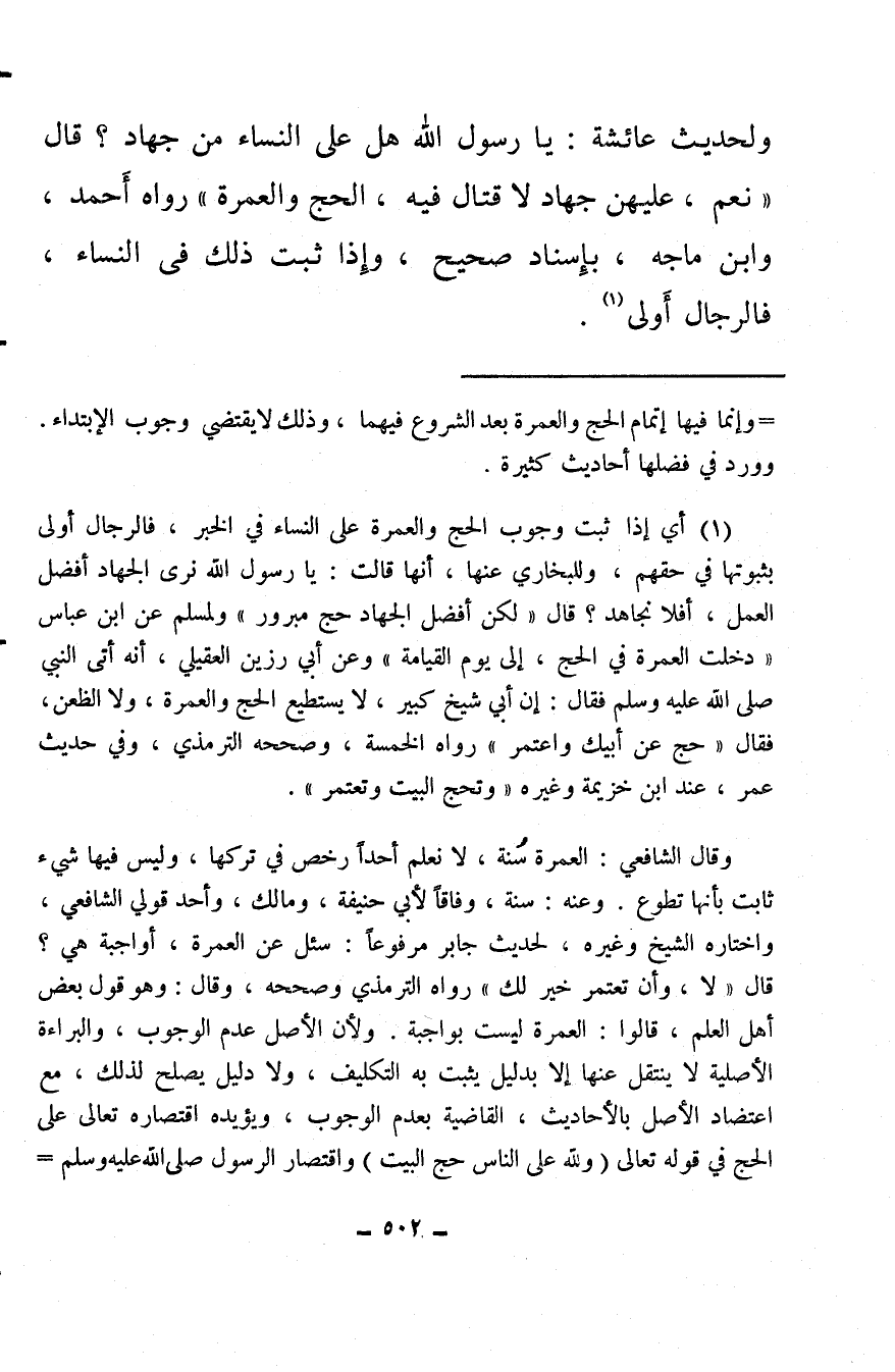 ولحديث عائشة: يا رسول الله هل على النساء من جهاد؟ قال «نعم، عليهن جهاد لا قتال فيه، الحج والعمرة» رواه أحمد، وابن ماجه، بإسناد صحيح، وإذا ثبت ذلك في النساء، فالرجال أَولى (¬1) .