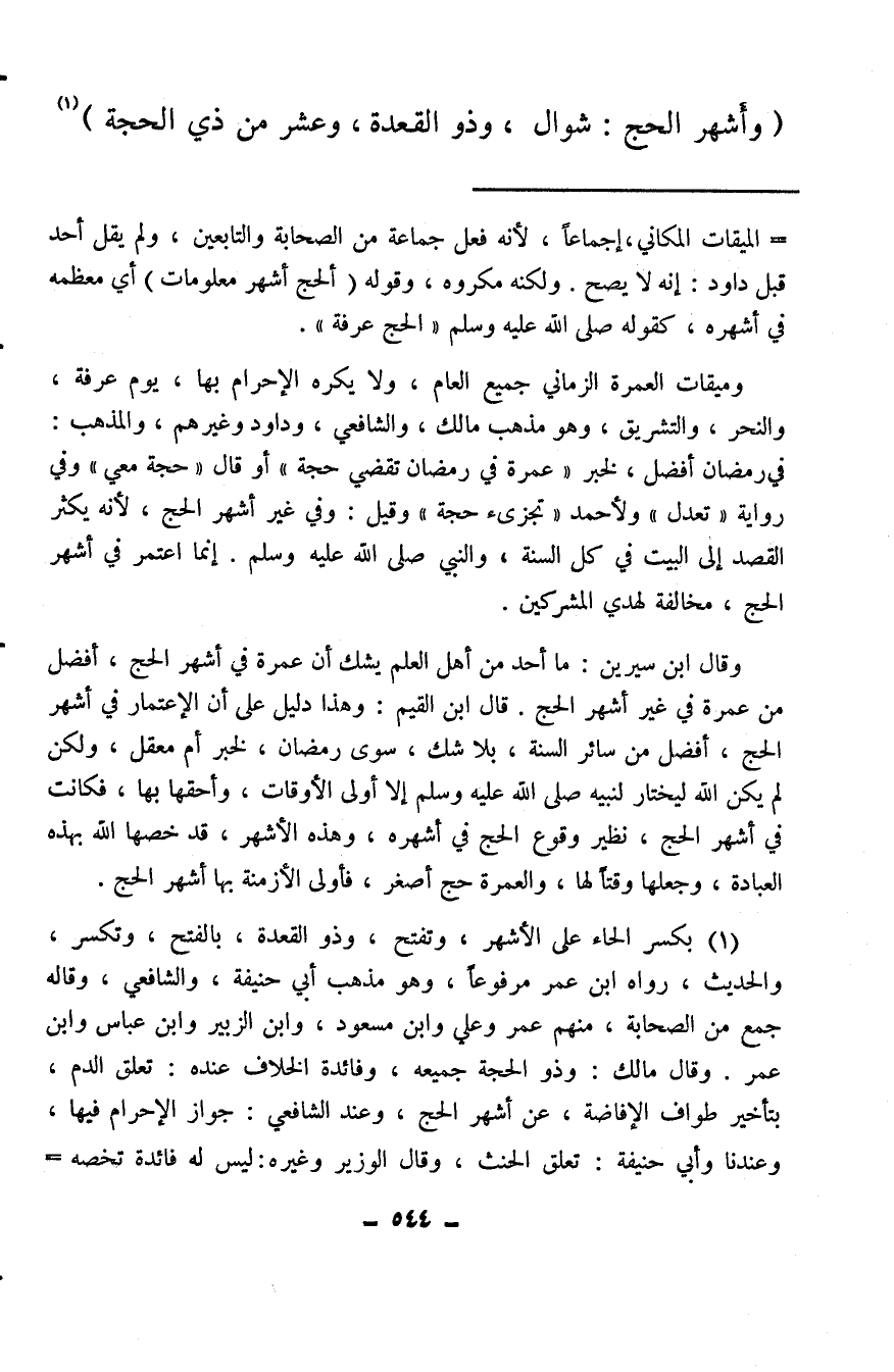 (¬1) بكسر الحاء على الأشهر، وتفتح، وذو القعدة، بالفتح، وتكسر، والحديث، رواه ابن عمر مرفوعًا، وهو مذهب أبي حنيفة، والشافعي، وقاله جمع من الصحابة، منهم عمر وعلي وابن مسعود، وابن الزبير وابن عباس وابن عمر. وقال مالك: وذو الحجة جميعه، وفائدة الخلاف عنده: تعلق الدم، بتأخير طواف الإفاضة، عن أشهر الحج، وعند الشافعي: جواز الإحرام فيها، وعندنا وأبي حنيفة: تعلق الحنث، وقال الوزير وغيره: ليس له فائدة تخصه