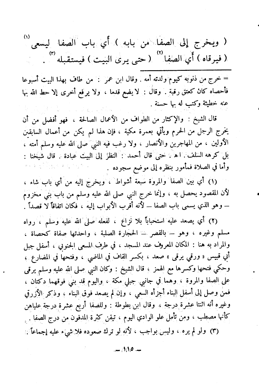 (¬2) أي يصعد عليه استحبابًا بلا نزاع، لفعله صلى الله عليه وسلم ورواه مسلم وغيره، وهو بالقصر الحجارة الصلبة واحدتها صفاة كحصاة والمراد به هنا: المكان المعروف عند المسجد، في طرف المسعى الجنوبي أسفل جبل أبي قبيس ورقي يرقى، صعد، بكسر القاف في الماضي، وفتحها في المضارع، وحكي فتحها وكسرها مع الهمز، قال الشيخ: وكان النبي صلى الله عليه وسلم يرقى على الصفا والمروة، وهما في جانبي جبلي مكة، واليوم قد بني فوقهما دكتان، فمن وصل إلى أسفل البناء أجزأه السعي، وإن لم يصعد فوق البناء، وذكر الأزرقي وغيره أنه اثنتا عشرة درجة، وقال ابن بطوطة: وللصفا أربع عشرة درجة علياهن كأنه مصطب ومن تأمل علو الوادي اليوم، تيقن كثرة المدفون من درج الصفا.