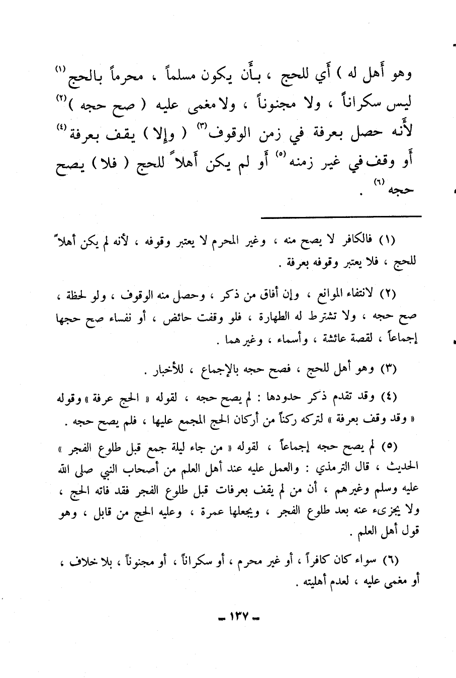 (¬1) فالكافر لا يصح منه، وغير المحرم لا يعتبر وقوفه، لأنه لم يكن أهلاً للحج، فلا يعتبر وقوفه بعرفة.