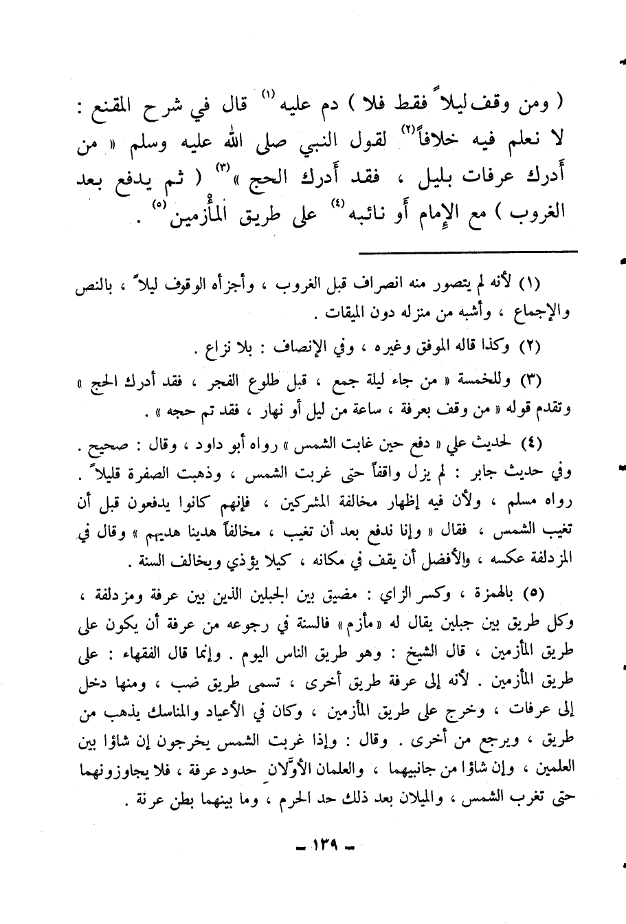 (¬3) وللخمسة «من جاء ليلة جمع، قبل طلوع الفجر، فقد أدرك الحج» ، وتقدم قوله: «من وقف بعرفة، ساعة من ليل أو نهار، فقد تم حجه» .