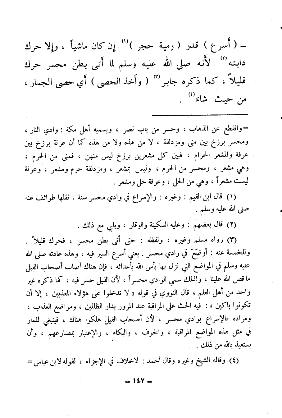 (¬1) قال ابن القيم: وغيره: والإسراع في وادي محسر سنة، نقلها طوائف عنه صلى الله عليه وسلم.