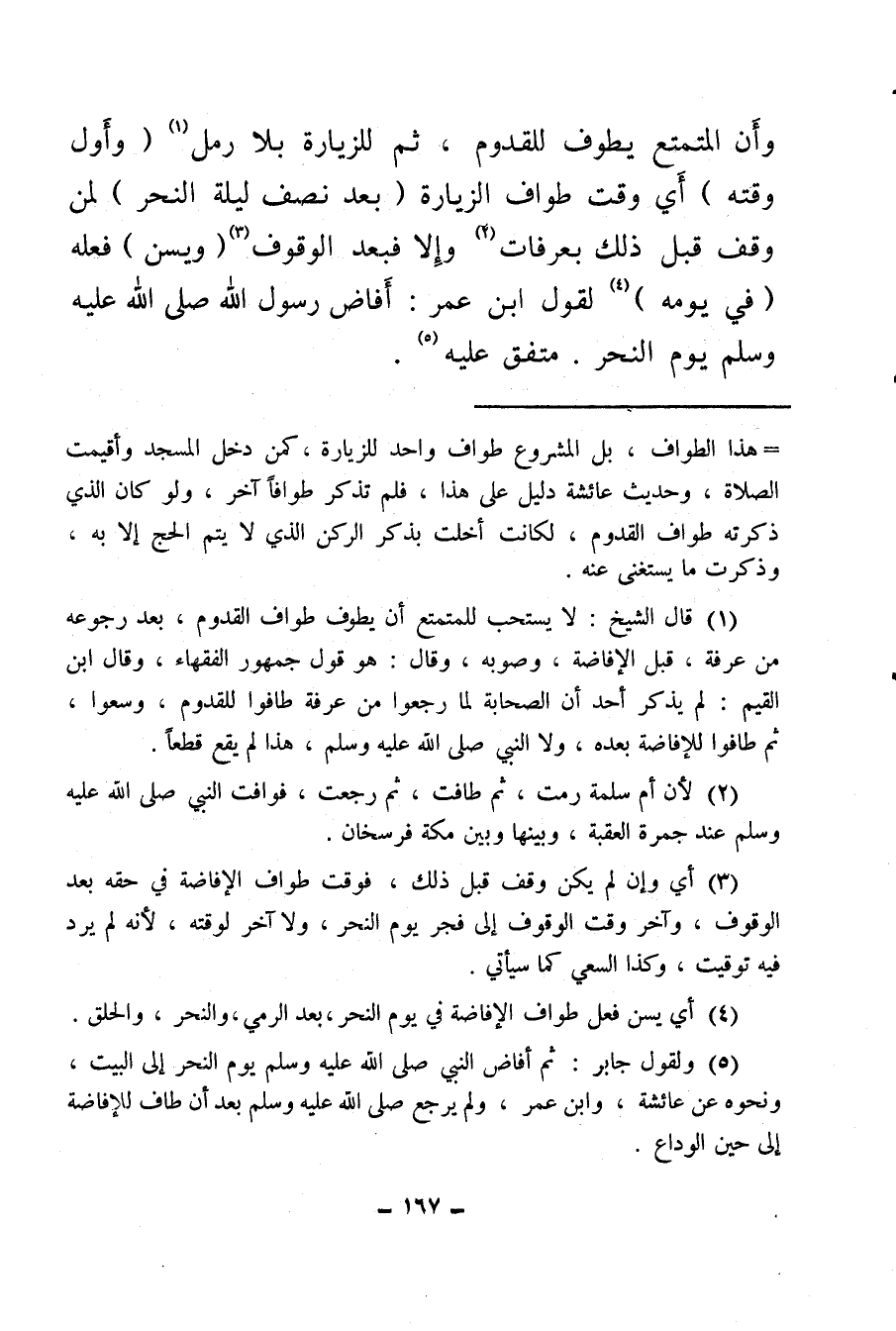 (¬1) قال الشيخ: لا يستحب للمتمتع أن يطوف طواف القدوم، بعد رجوعه من عرفة، قبل الإفاضة، وصوبه وقال: هو قول جمهور الفقهاء، وقال ابن القيم: لم يذكر أحد أن الصحابة لما رجعوا من عرفة طافوا للقدوم وسعوا، ثم طافوا للإفاضة بعده، ولا النبي صلى الله عليه وسلم هذا لم يقع قطعا.