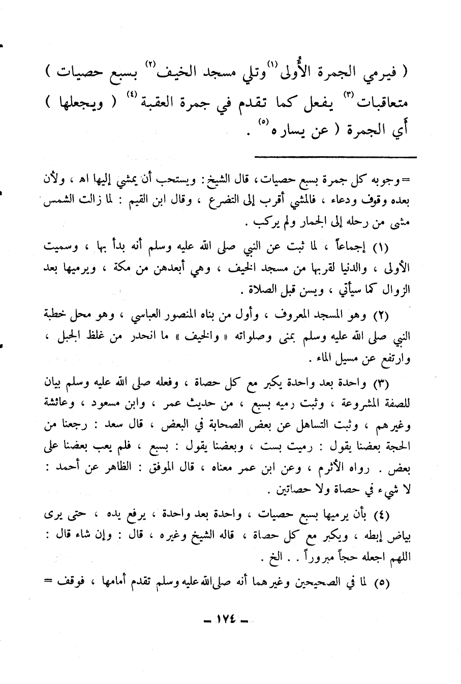 (فيرمي الجمرة الأولى (¬1) وتلي مسجد الخيف (¬2) بسبع حصيات) متعاقبات (¬3) يفعل كما تقدم في جمرة العقبة (¬4) (ويجعلها) أي الجمرة (عن يساره) (¬5) .
