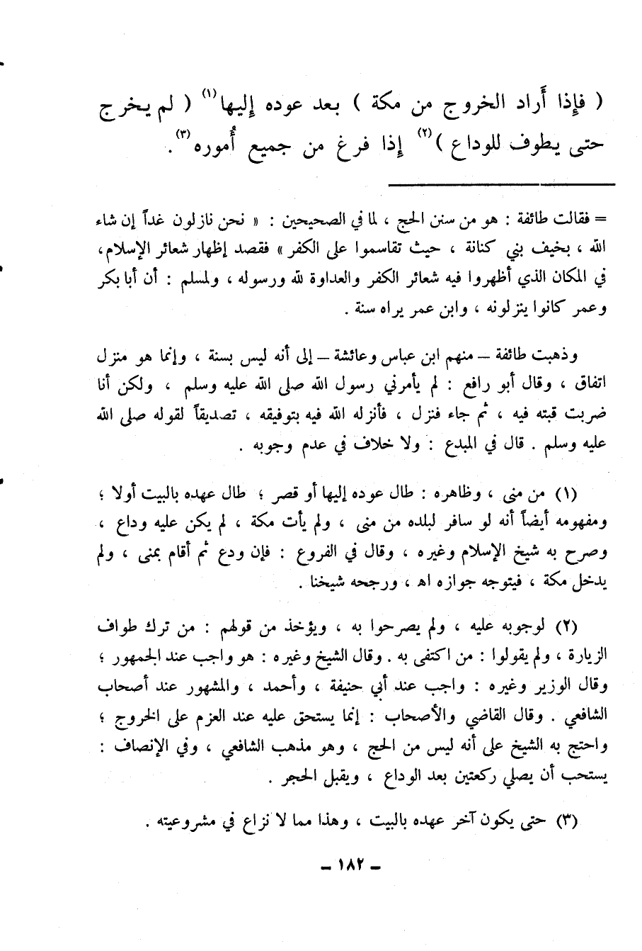 (¬2) لوجوبه عليه، ولم يصرحوا به، ويؤخذ من قولهم: من ترك طواف الزيارة ولم يقولوا: من اكتفى به، وقال الشيخ وغيره: هو واجب عند الجمهور وقال الوزير وغيره: واجب عند أبي حنيفة، وأحمد، والمشهور عند أصحاب الشافعي، وقال القاضي والأصحاب، إنما يستحق عليه عند العزم على الخروج، واحتج به الشيخ على أنه ليس من الحج، وهو مذهب الشافعي، وفي الإنصاف: يستحب أن يصلي ركعتين بعد الوداع، ويقبل الحجر.