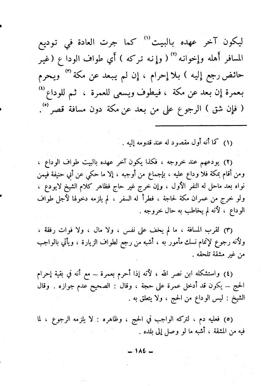(¬3) لقرب المسافة، ما لم يخف على نفس، ولا مال، ولا فوات رفقة، ولأنه رجوع لإتمام نسك مأمور به، أشبه من رجع لطواف الزيارة، ويأتي بالواجب من غير مشقة تلحقه.