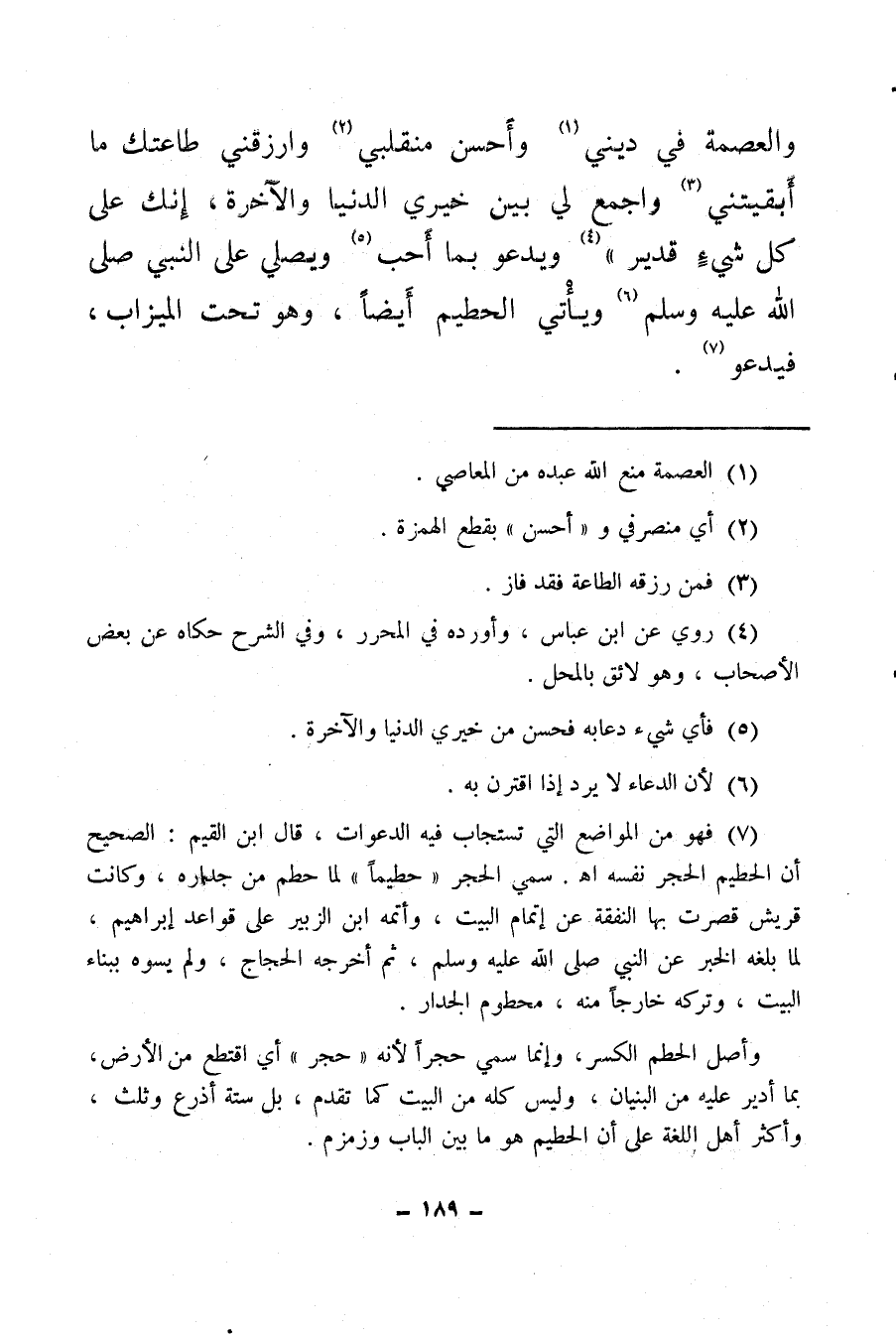 والعصمة في ديني (¬1) وأحسن منقلبي (¬2) وارزقني طاعتك ما أبقيتني (¬3) واجمع لي بين خيري الدنيا والآخرة، إنك على كل شيء قدير (¬4) ويدعو بما أحب (¬5) ويصلي على النبي صلى الله عليه وسلم (¬6) ، ويأتي الحطيم أيضا، وهو تحت الميزاب فيدعو (¬7) .