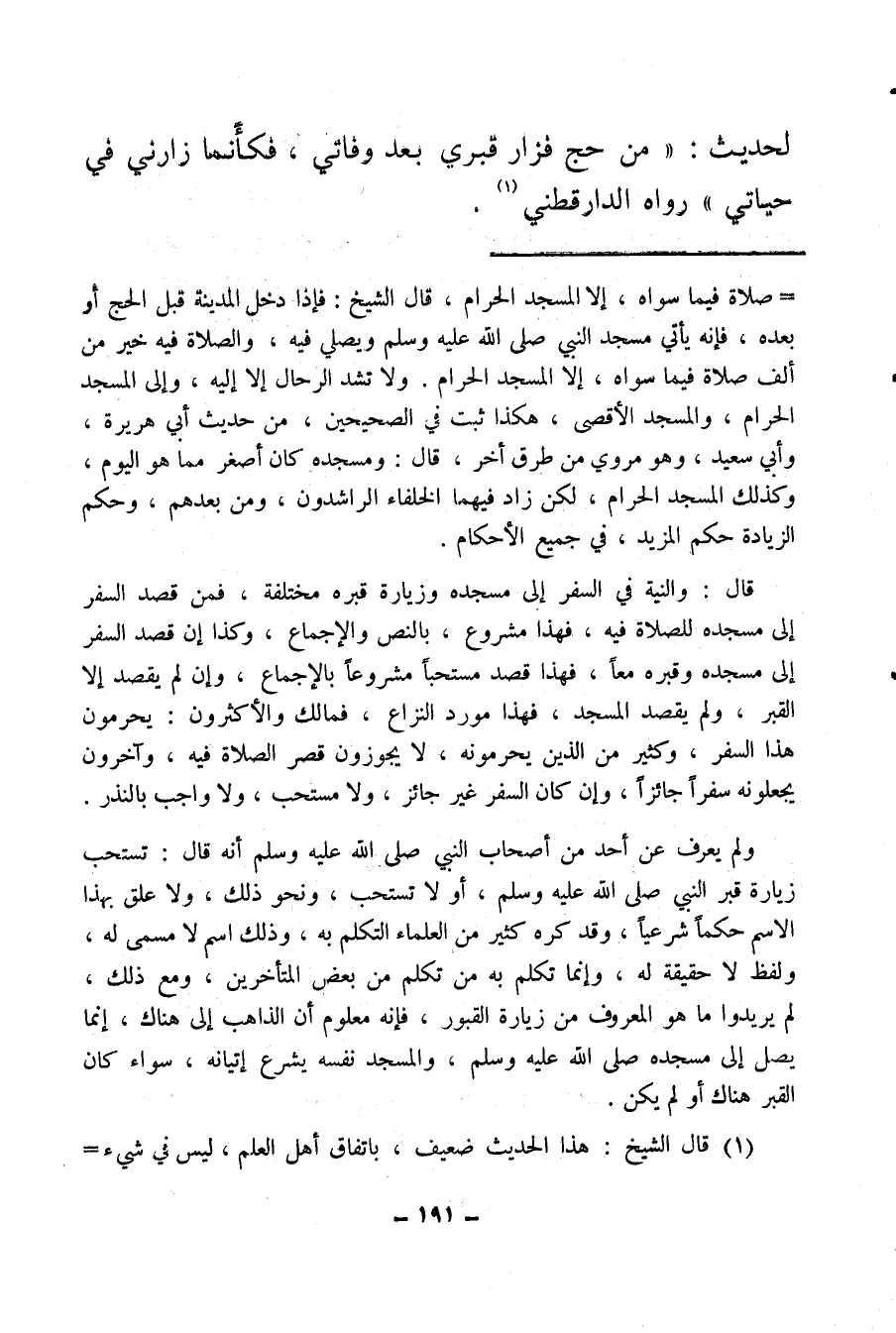 (¬1) قال الشيخ: هذا الحديث ضعيف، باتفاق أهل العلم، ليس في شيء