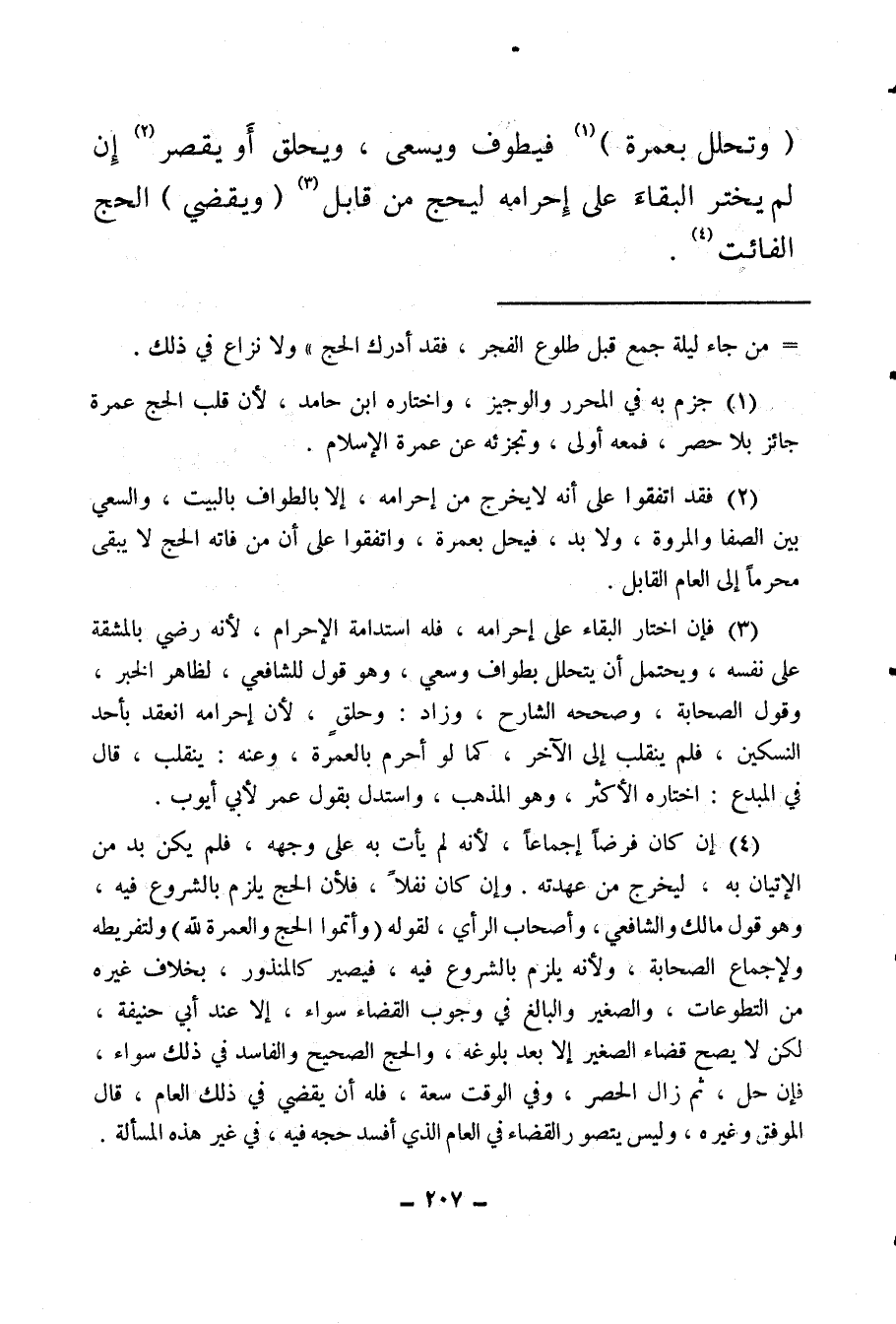 (¬2) فقد اتفقوا على أنه لا يخرج من إحرامه، إلا بالطواف بالبيت، والسعي بين الصفا والمروة، ولا بد فيحل بعمرة، واتفقوا على أن من فاته الحج لا يبقى محرما إلى العام القابل.