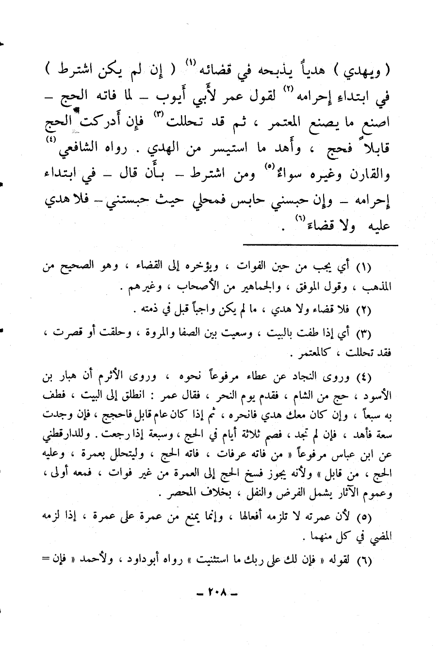 (ويهدي) هديًا يذبحه في قضائه (¬1) (إن لم يكن اشترط) في ابتداء إحرامه (¬2) لقول عمر لأبي أيوب -لما فاته الحج- اصنع ما يصنع المعتمر، ثم قد تحللت (¬3) فإن أدركت الحج قابلا فحج، وأهد ما استيسر من الهدي، رواه الشافعي (¬4) والقارن وغيره سواء (¬5) ومن اشترط بأن قال: في ابتداء إحرامه وإن حبسني حابس فمحلي حيث حبستني فلا هدي عليه ولا قضاء (¬6) .