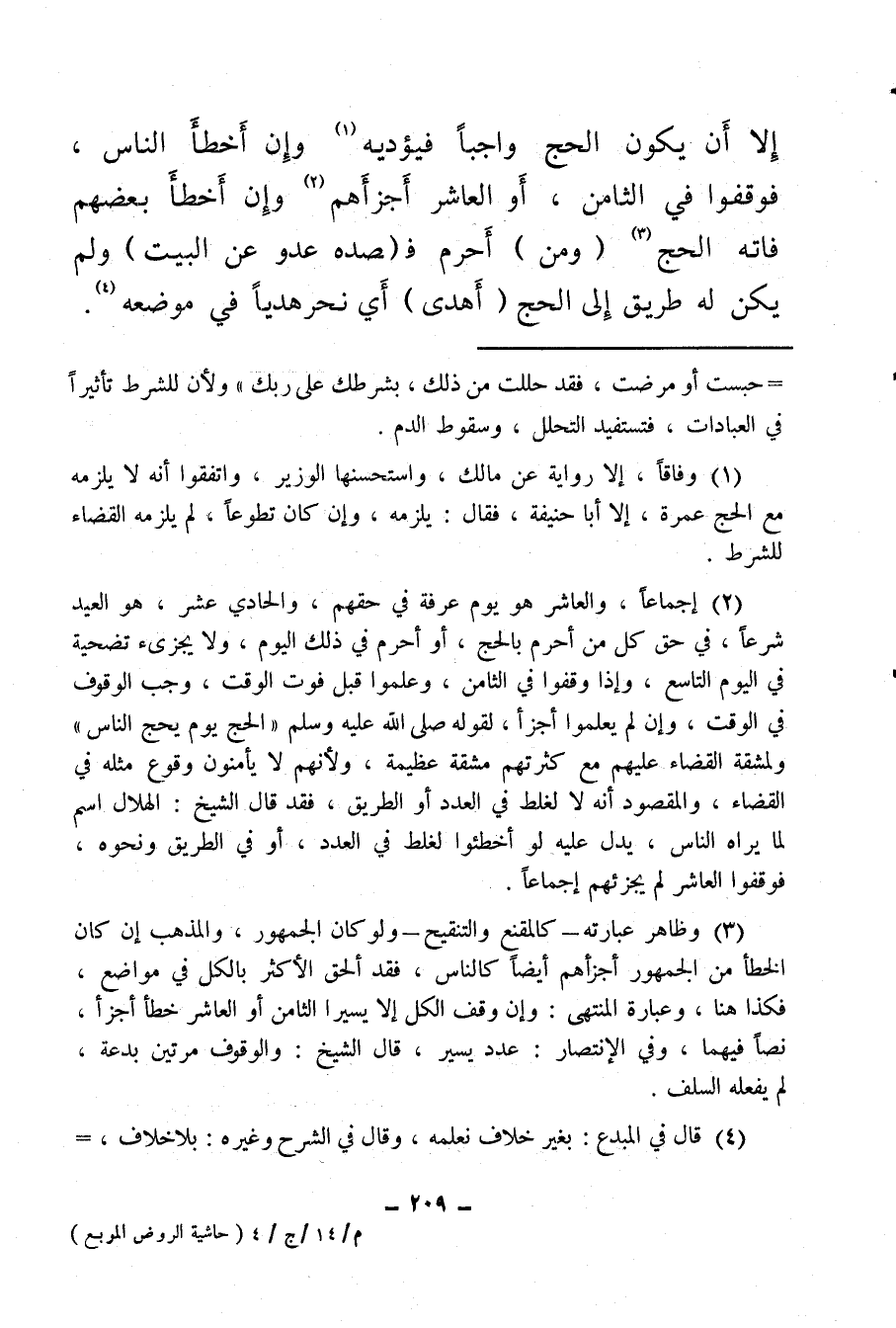 (¬2) إجماعًا والعاشر هو يوم عرفة في حقهم، والحادي عشر، هو العيد شرعًا، في حق كل من أحرم بالحج، أو أحرم في ذلك اليوم، ولا يجزئ تضحية في اليوم التاسع، وإذا وقفوا في الثامن، وعلموا قبل فوت الوقت، وجب الوقوف في الوقت، وإن لم يعلموا أجزأ لقوله صلى الله عليه وسلم «الحج يوم يحج الناس» ولمشقة القضاء عليهم مع كثرتهم مشقة عظيمة، ولأنهم لا يأمنون وقوع مثله في القضاء، والمقصود أنه لا لغلط في العدد أو الطريق، فقد قال الشيخ: الهلال اسم لما يراه الناس، يدل عليه لو أخطئوا لغلط في العدد، أو في الطريق ونحوه، فوقفوا العاشر لم يجزئهم إجماعا.