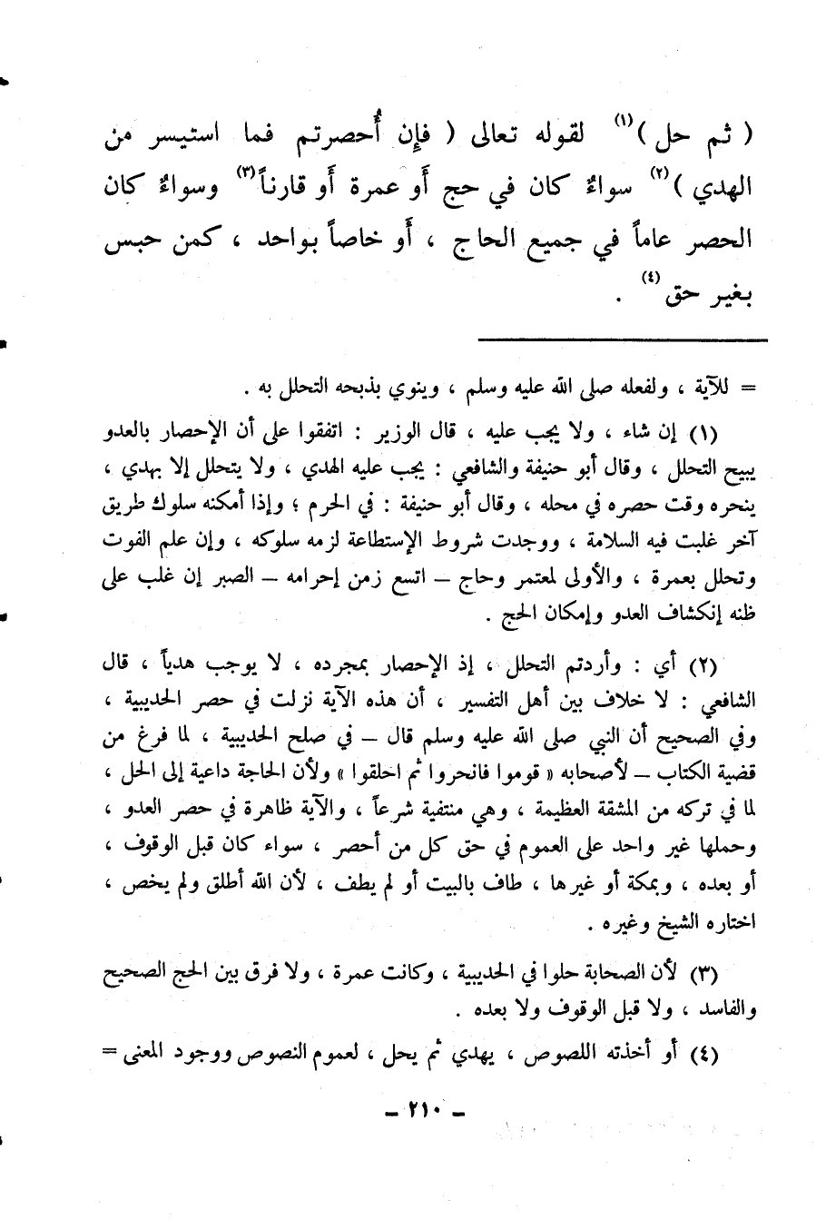 (ثم حل) (¬1) لقوله تعالى: {فَإِنْ أُحْصِرْتُمْ فَمَا اسْتَيْسَرَ مِنَ الْهَدْيِ} (¬2) سواء كان في حج أو عمرة أو قارنًا (¬3) وسواء كان الحصر عاما في جميع الحاج، أو خاصا بواحد، كمن حبس بغير حق (¬4) .