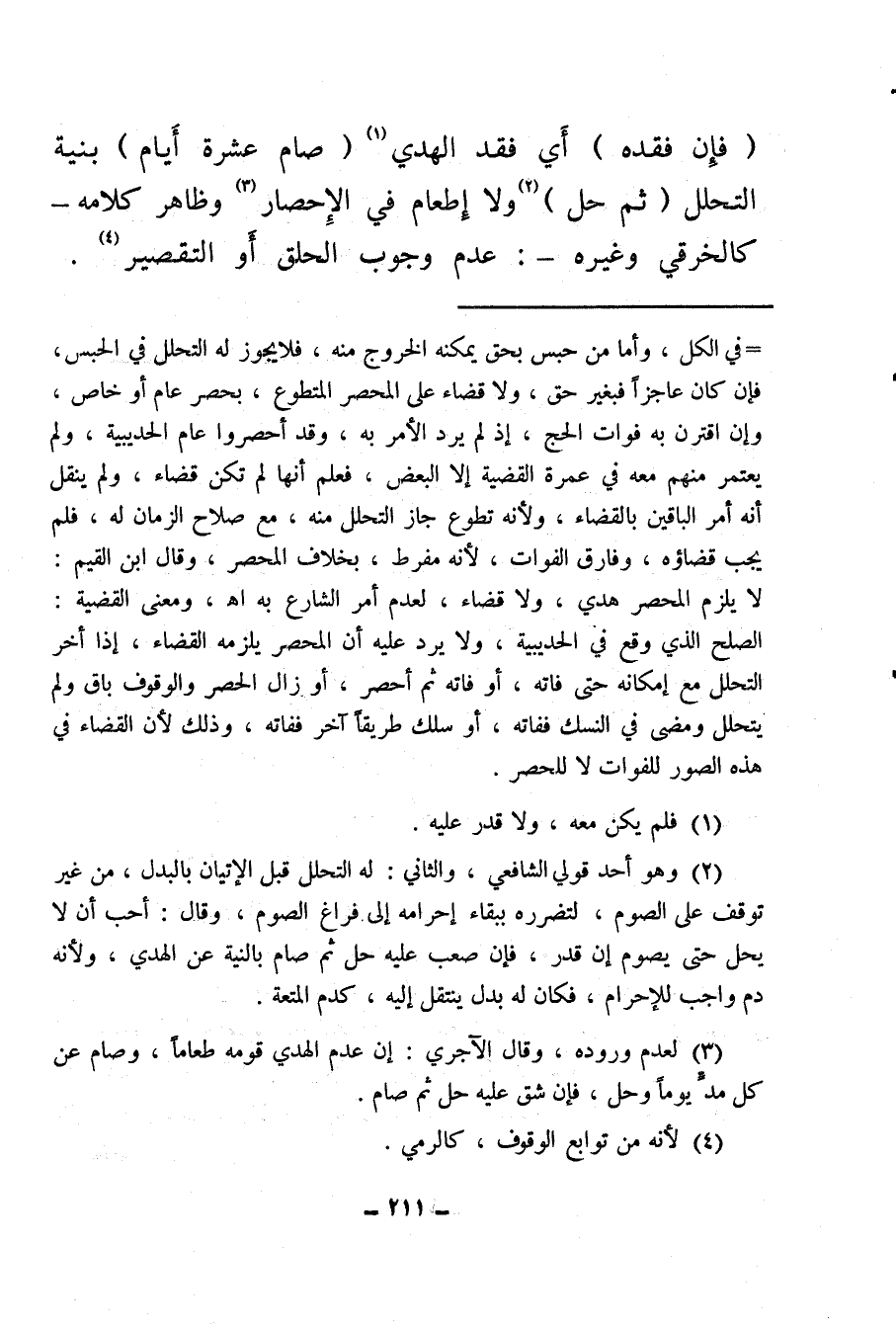 (¬3) لعدم وروده وقال الآجري: إن عدم الهدي قومه طعاما، وصام عن كل مد يوما وحل، فإن شق عليه حل ثم صام.