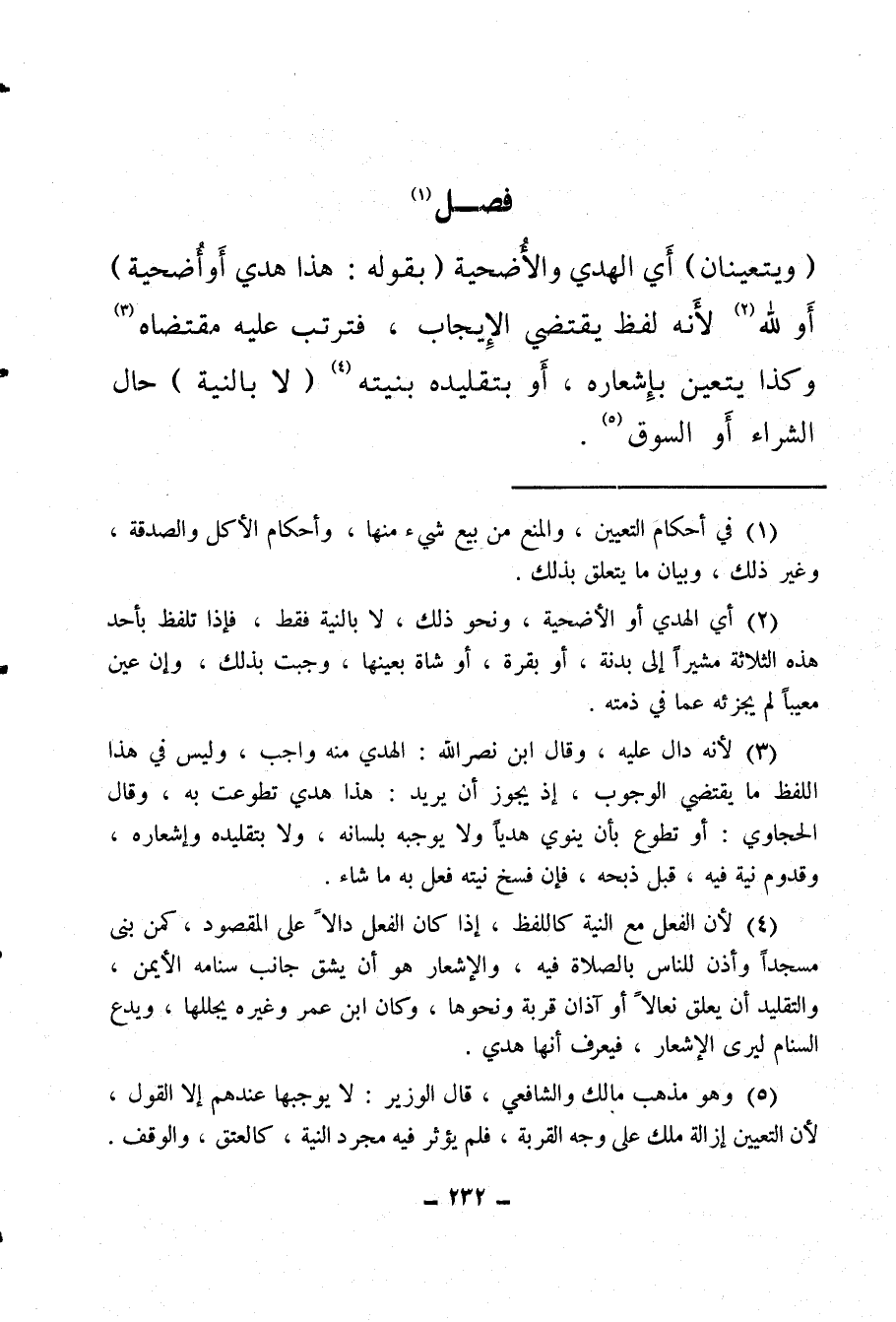 (¬4) لأن الفعل مع النية كاللفظ، إذا كان الفعل دالاًّ على المقصود، كمن بنى مسجدًا وأذن للناس بالصلاة فيه، والإشعار هو أن يشق جانب سنامه الأيمن، والتقليد أن يعلق نعالاً أو آذان قربة ونحوها، وكان ابن عمر وغيره يجللها، ويدع السنام ليرى الإشعار، فيعرف أنها هدي.
