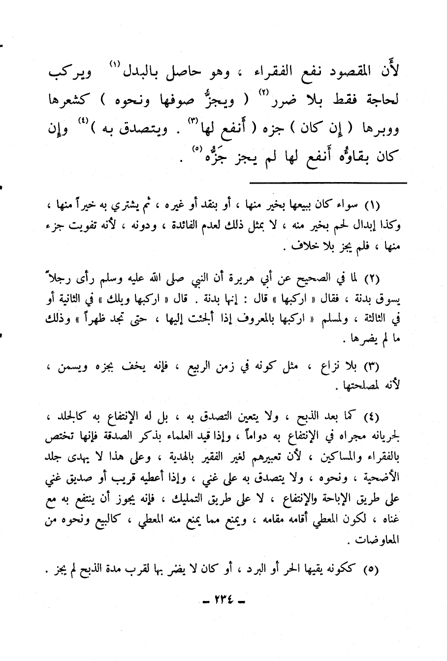 لأن المقصود نفع الفقراء، وهو حاصل بالبدل (¬1) ويركب لحاجة فقط بلا ضرر (¬2) (ويجزُّ صوفها ونحوه) كشعرها ووبرها (إن كان) جزه (أنفع لها (¬3) ويتصدق به) (¬4) وإن كان بقاؤه أنفع لها لم يجز جزُّه (¬5) .