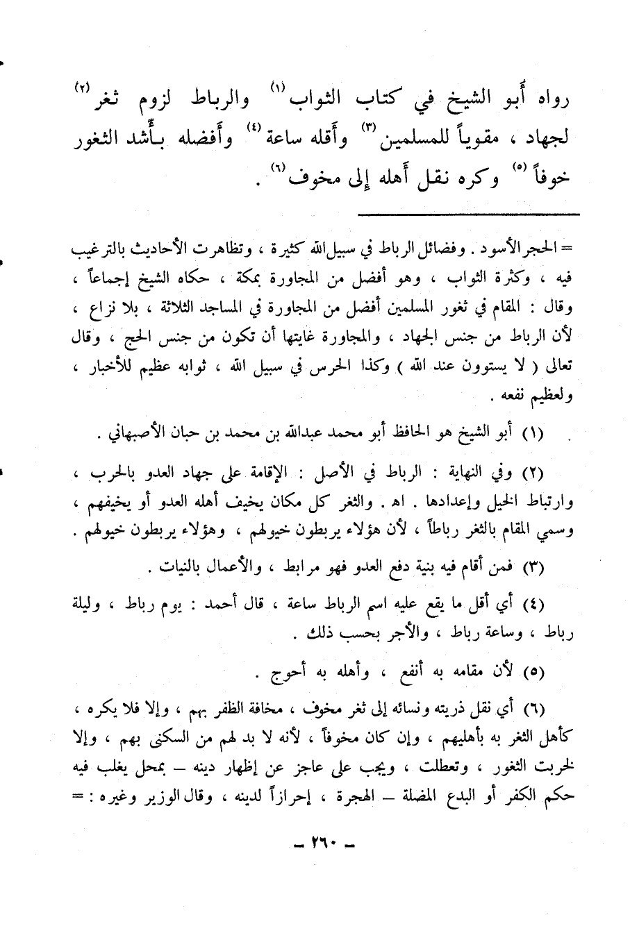 (¬2) وفي النهاية: الرباط في الأصل: الإقامة على جهاد العدو بالحرب وارتباط الخيل وإعدادها. اهـ والثغر كل مكان يخيف أهله والعدو أو يخيفهم وسمي المقام بالثغر رباطا، لأن هؤلاء يربطون خيولهم، وهؤلاء يربطون خيولهم.