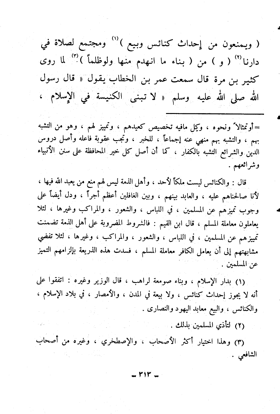 (¬1) بدار الإسلام، وبناء صومعة لراهب، قال الوزير وغيره: اتفقوا على أنه لا يجوز إحداث كنائس، ولا بيعة في المدن، والأمصار، في بلاد الإسلام، والكنائس والبيع معابد اليهود والنصارى.